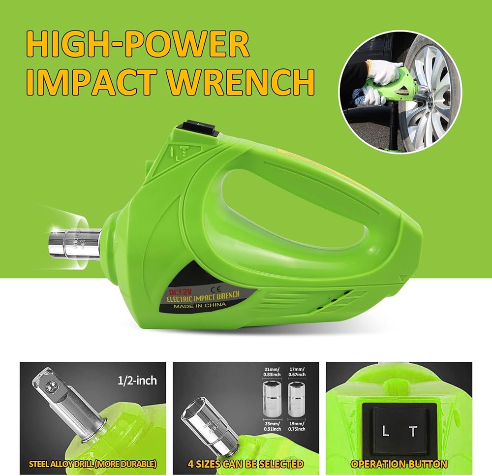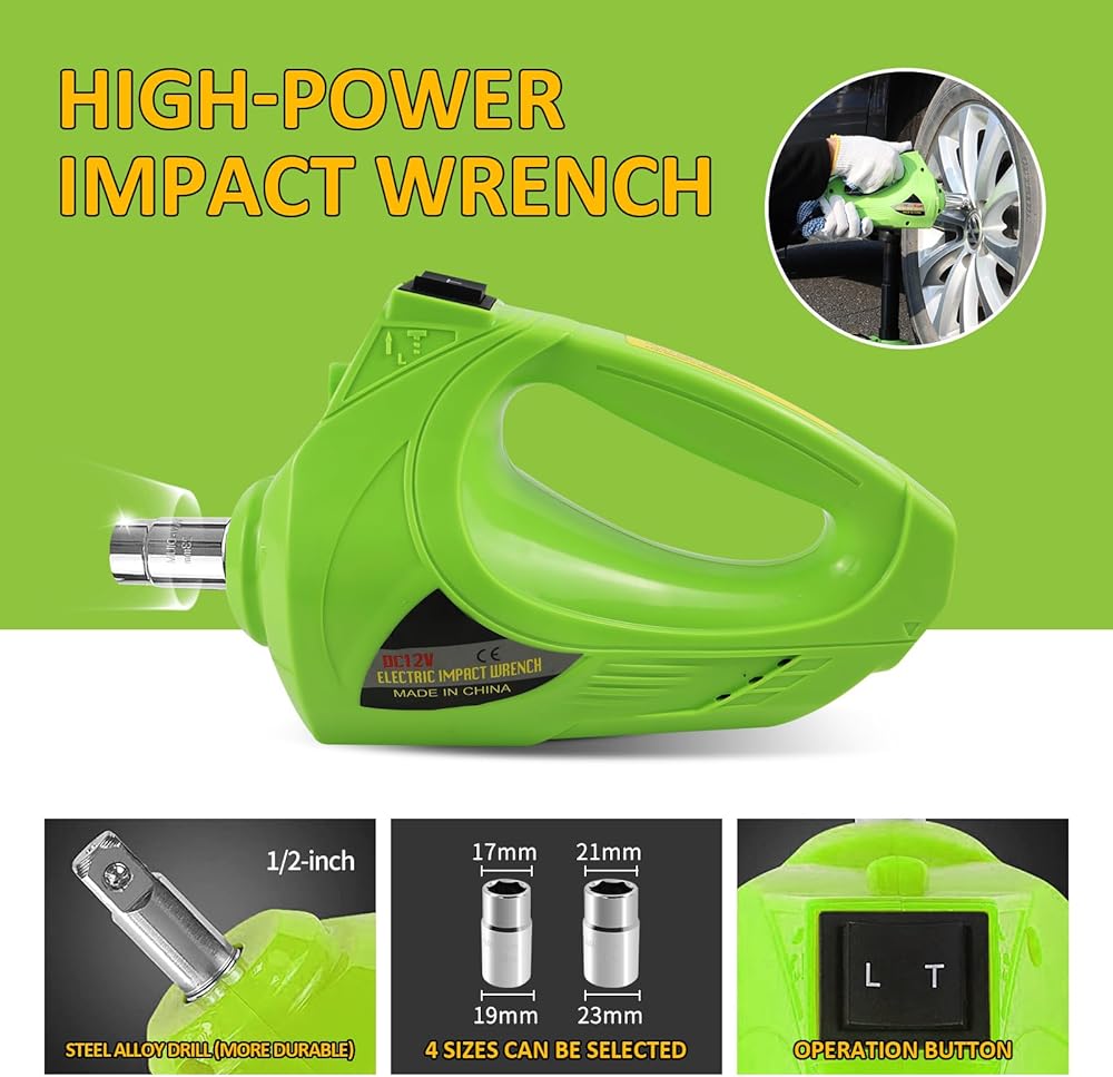 [مفتاح ربط كهربائي] تشتمل مجموعة مقابس السيارة الكهربائية بتيار مستمر 12 فولت على مفتاح ربط كهربائي محمول مقاس 1/2 بوصة بأكمامين بأربعة أحجام، تتوافق مع معظم المركبات. أقصى عزم دوران 420 نيوتن متر