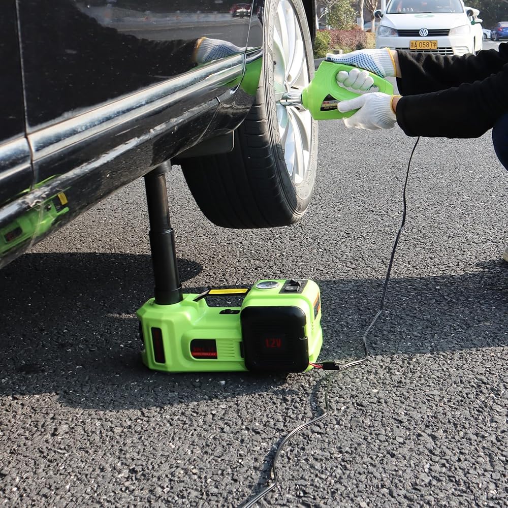 طقم رافعة السيارة الكهربائية 5T رافعة هيدروليكية مع مفتاح ربط كهربائي، منفاخ إطارات وإضاءة LED، أدوات محمولة لتغيير إطارات رفع السيارة في حالات الطوارئ