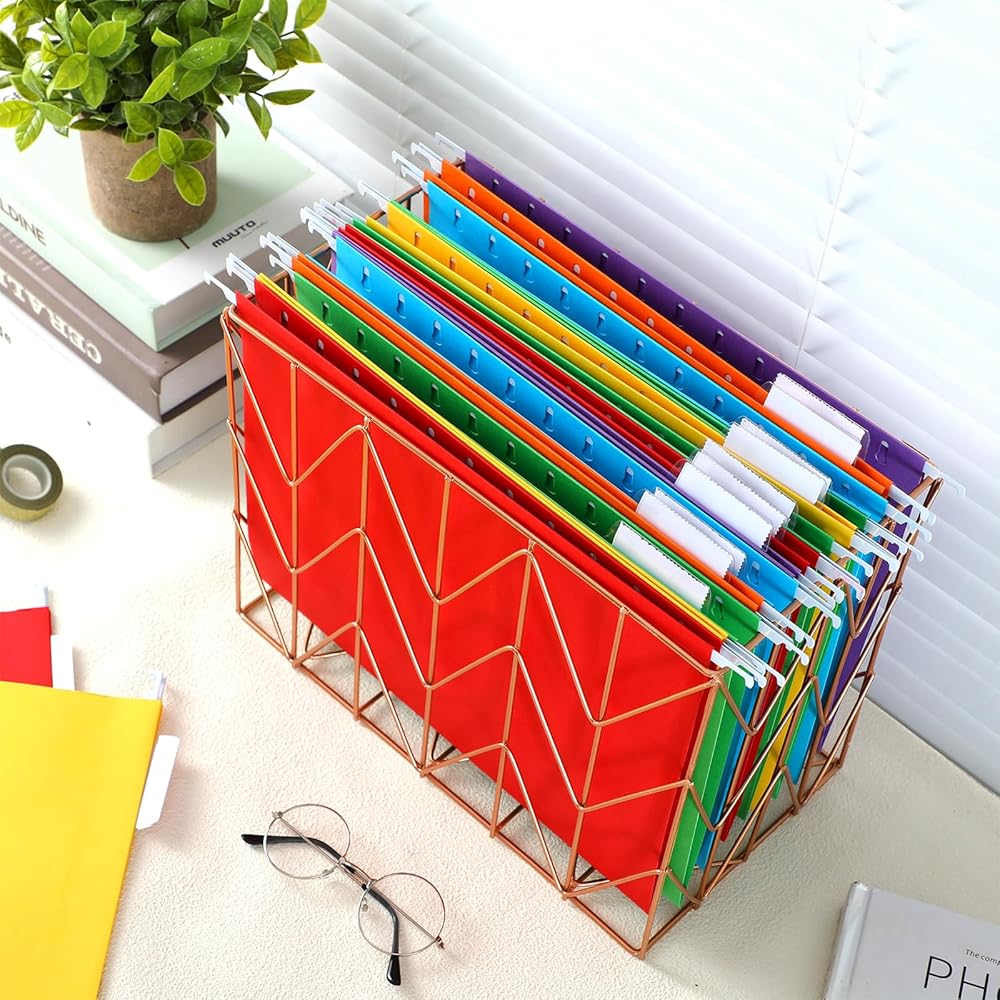 The hanging file folder organizer is made of sturdy paper material to withstand daily use. These hanging file folders come with durable metal hooks, so they won't tear or wear out easily. You can rely on these folders to keep your documents safe and secure without having to worry about them collapsing over time.