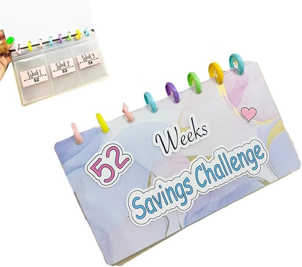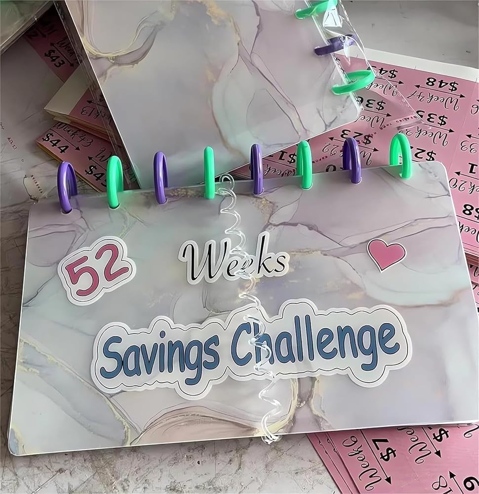 【 Reusable Durable 52 Week Savings Challenge 】Removable Cash Storage Binder, If You Want to Add Your Own Challenge, Choose to Match More Binder Accessories ! ! ! The reusable 52 Week Savings Challenge where you can save up for 52 week, meet your goal and reuse her again This is seriously a fun and cute way to save.