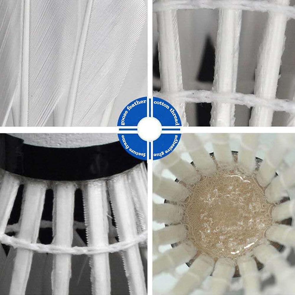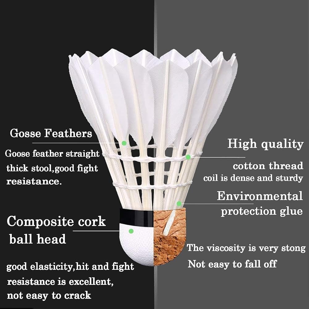 • 【الخامة: الريشة مصنوعة بإتقان من 16 قطعة من ريش الإوز عالي الجودة، والذي يتوافق مع رأس كرة الفلين المركب عالي الجودة. أكثر قوة وطويلة الأمد.