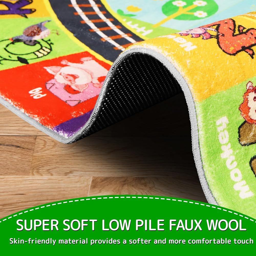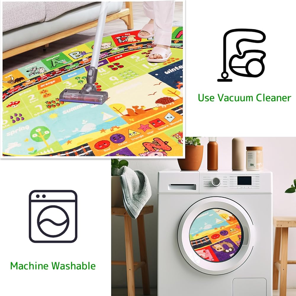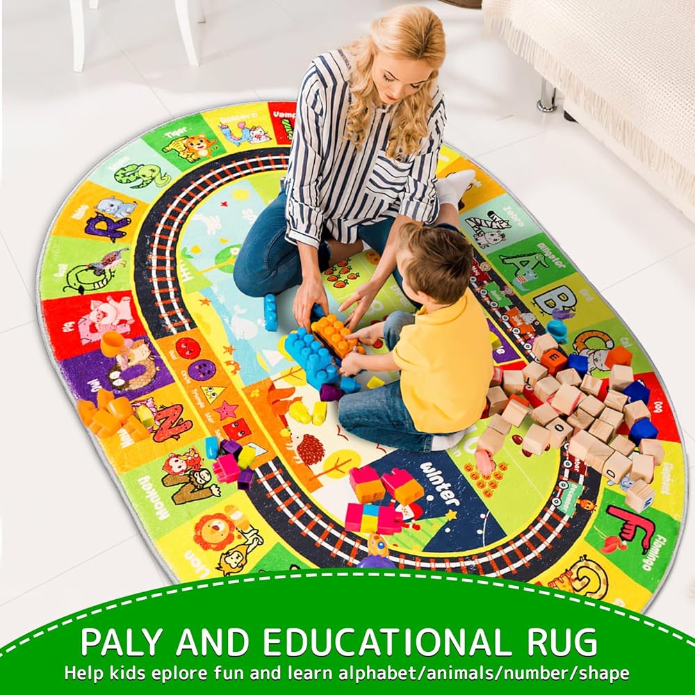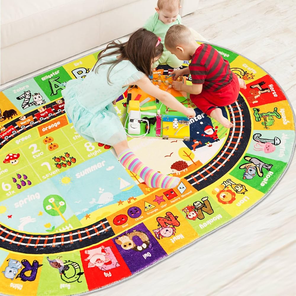 • ❤️【سجادة تعليمية بيضاوية للأطفال】❤️تم تصميم سجادة التعلم المبكر البيضاوية هذه لتأسر العقول الصغيرة بتنوعها الغني من العناصر التعليمية. تحتوي على حيوانات وحروف ABC وأرقام وأشكال وخضروات وأشهر ومواسم وأكثر من ذلك، مما يعزز التطور الإدراكي والحسي المبكر؛ مثالية لمرحلة ما قبل المدرسة