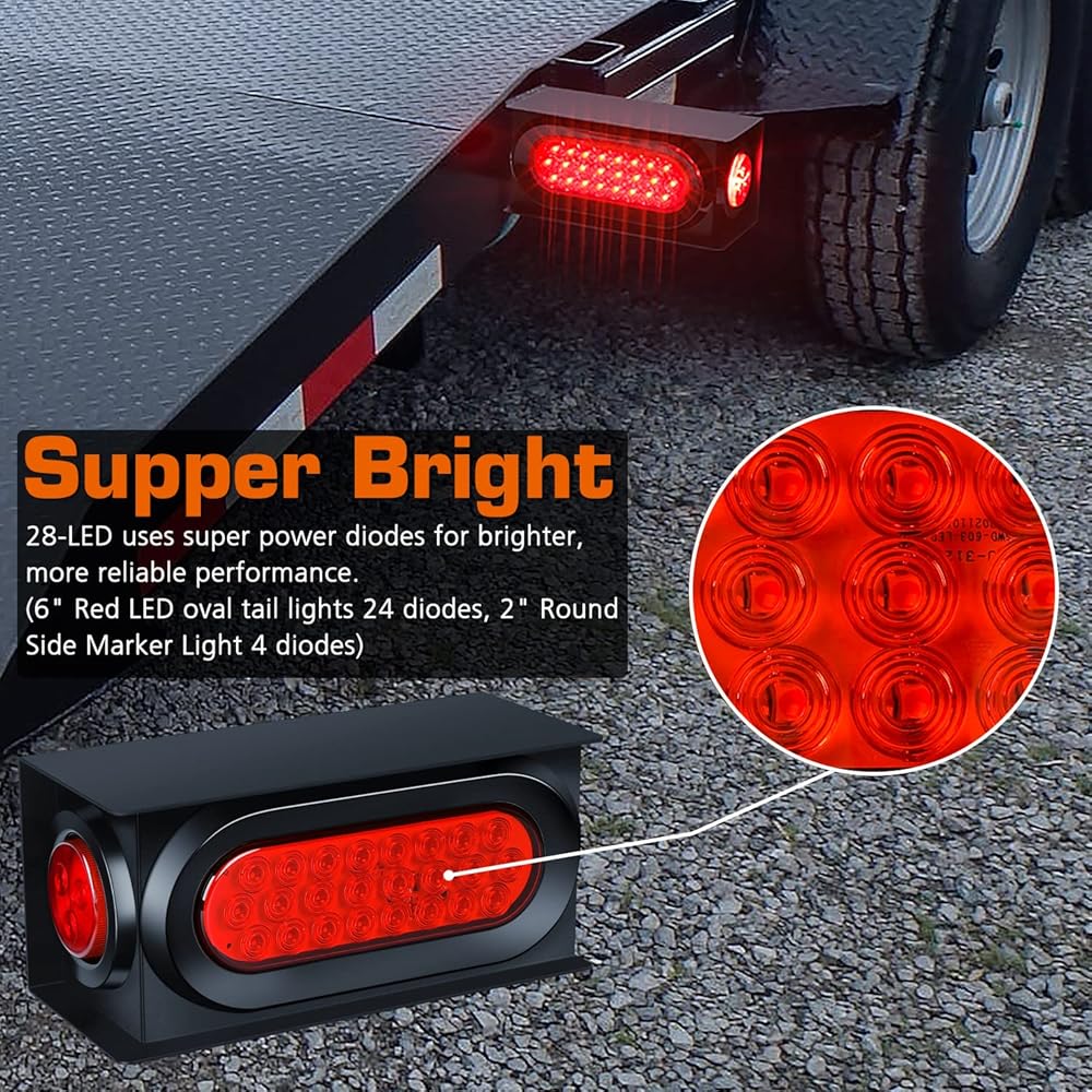 مجموعة إطارات/صناديق إضاءة للمقطورة الفولاذية مكونة من قطعتين من WoneNice، بما في ذلك مصابيح LED بيضاوية مقاس 6 بوصات للتوقف/الخلفية ومصابيح علامة جانبية LED مستديرة مقاس 2 بوصة مع موصلات أسلاك وحلقة معدنية