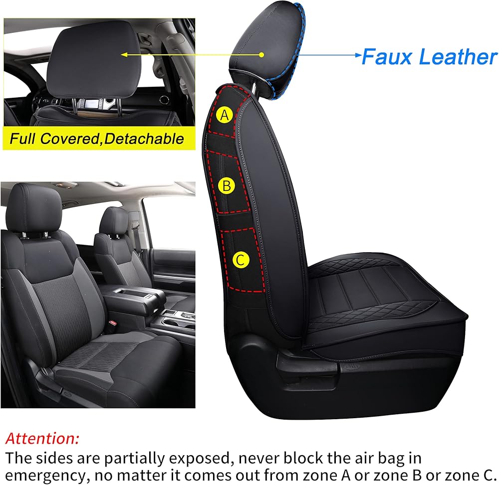 المقاعد الأمامية: الجوانب مكشوفة جزئيًا، ولا تسد الوسادة الهوائية أبدًا في حالات الطوارئ. يمكن لأغطية مسند الرأس الأمامية أن تغطي مسند الرأس بالكامل (وليس حزامًا) دون الكشف عن الجوانب.
