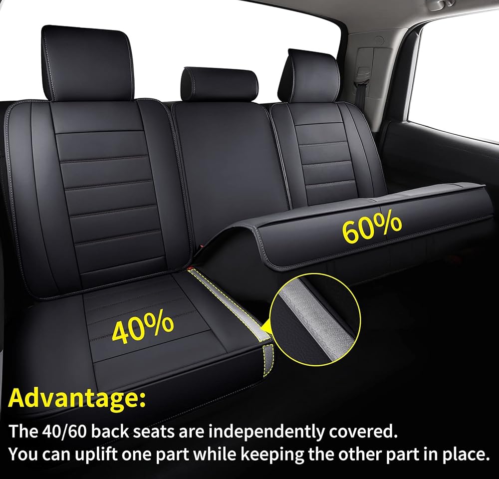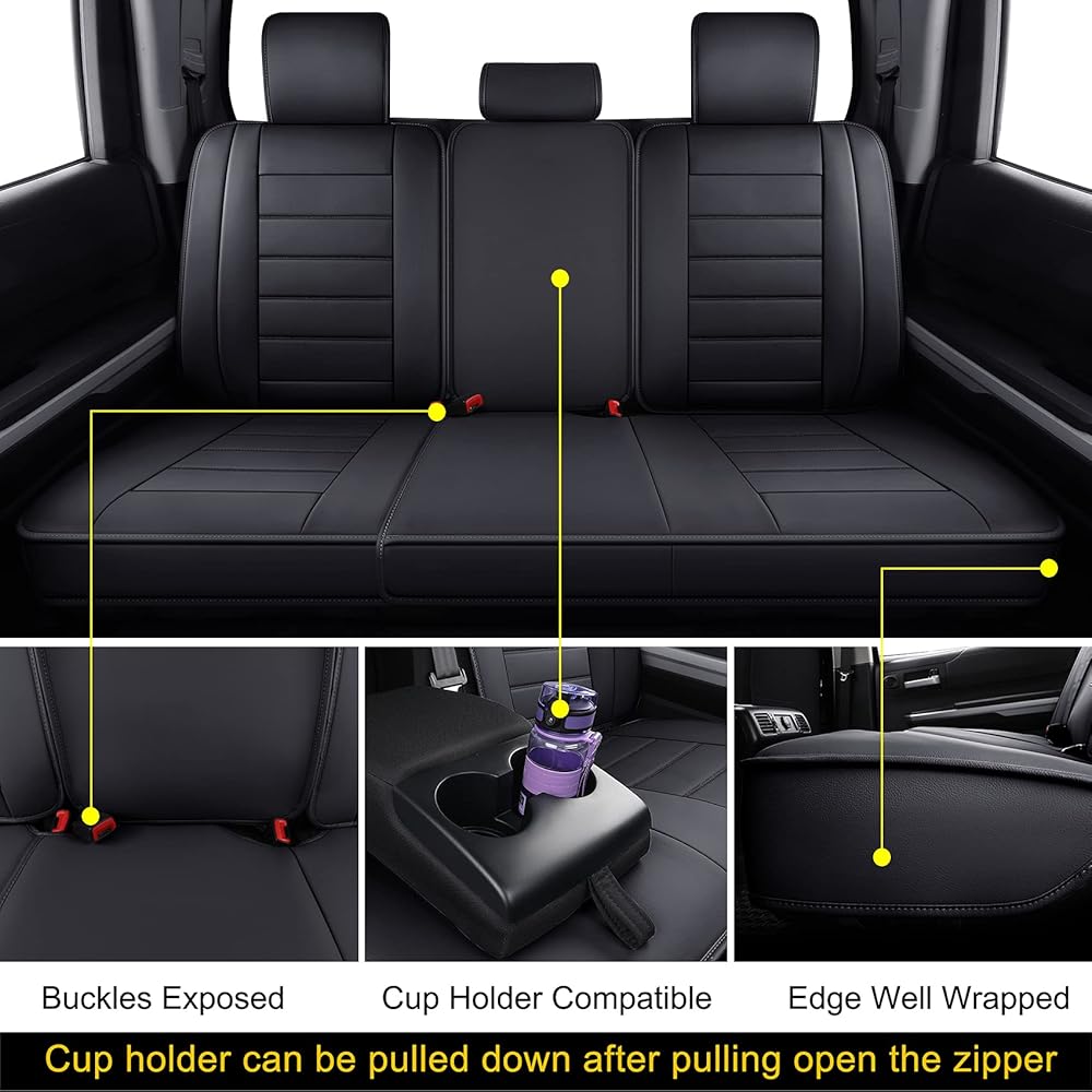 ملاءمة شبه مخصصة - تم تخصيص أغطية مقاعد التندرا هذه لشاحنات البيك أب Tundra CrewMax Double Regular Cab لعام 2014-2021، بما في ذلك الزخارف أدناه: SR5، Limited، 1794 Edition، Platinum، TRD PRO، SR. ملحوظة: لا يوجد غطاء للمقعد الأوسط الأمامي.