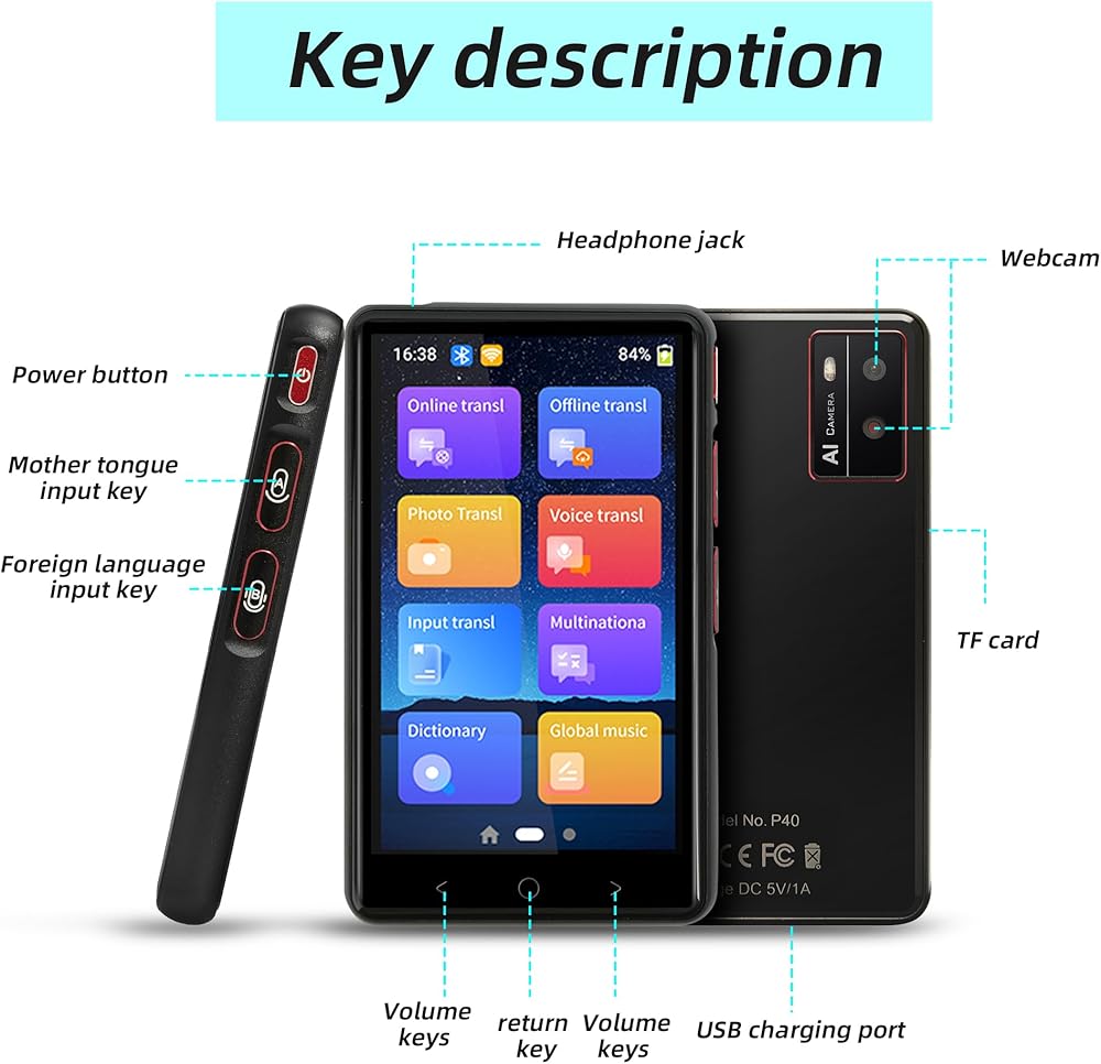 جهاز مترجم اللغة، ترجمة صوتية فورية في اتجاهين، جهاز مترجم محمول مع 135 لغة، 4 بوصة عالي الدقة عبر الإنترنت/غير متصل/مترجم لغة فوري للصور للسفر والتعلم والأعمال