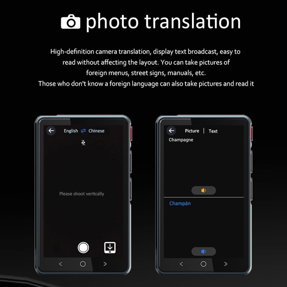 【ترجمة صور قوية】: يحتوي مترجم اللغة على ترجمة صور كاميرا مدمجة عالية الدقة ويدعم ترجمة الصور عبر الإنترنت لما يصل إلى 56 لغة وترجمة دون اتصال بـ 23 لغة، والتي يمكن تطبيقها في قوائم القراءة والعلامات والملصقات والأدلة ، إلخ.