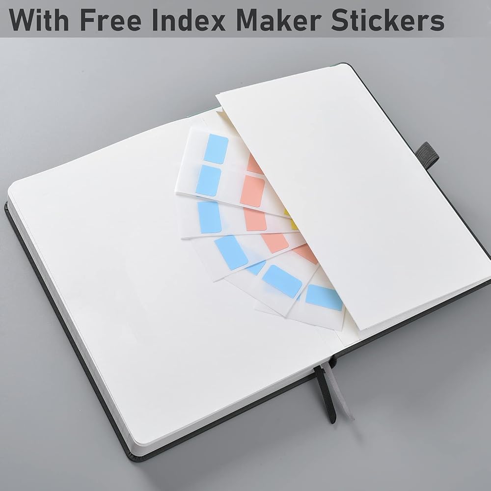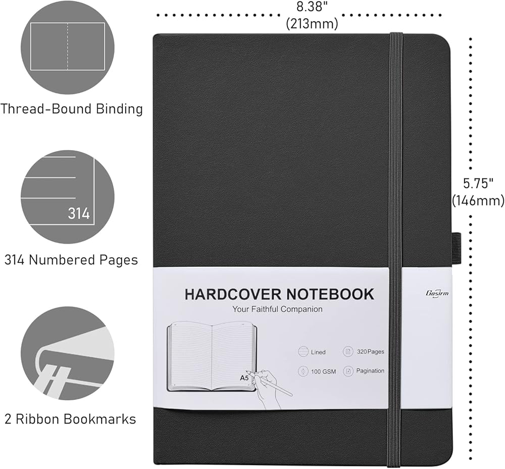 • - 320 جانبًا من الورق السميك اللامع 100 جرامًا للمتر المربع: 314 صفحة مرقمة مبطنة بأوراق معتمدة من مجلس رعاية الغابات (FSC)، توفر لك مساحة واسعة للكتابة، غلاف سميك A5 مقاس 5.75 بوصة × 8.38 بوصة (146 مم × 213 مم)، أكثر سمكًا بنسبة 20% من العادي، يقاوم نزيف الحبر من خلال والريش.