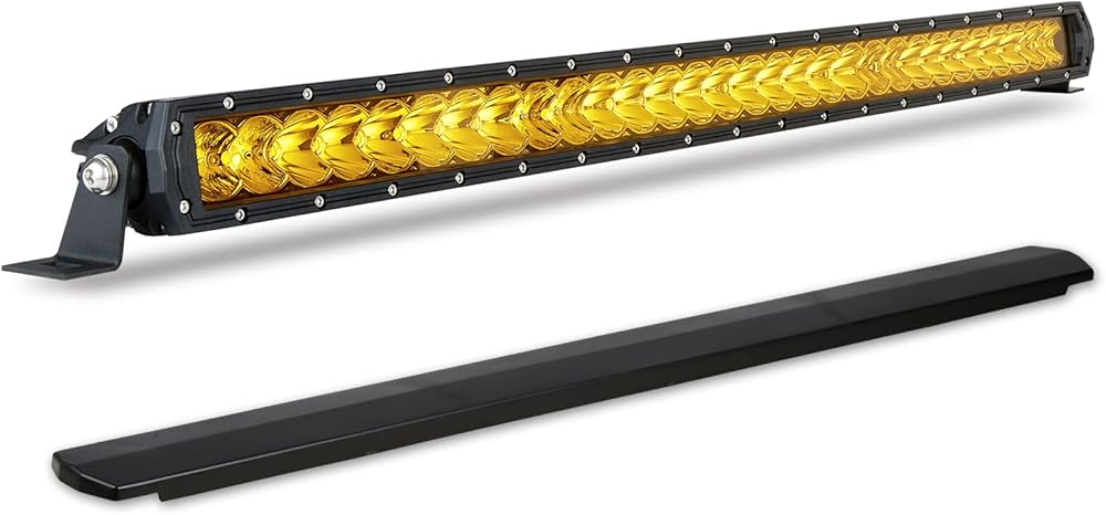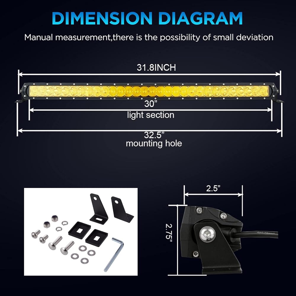 BIGLION.X شريط ضوء LED كهرماني 32 بوصة مجموعة فيضان بقعة صف واحد للطرق الوعرة شريط ضوء كهرماني للقيادة مقاوم للماء IP68 12 فولت 24 فولت للشاحنات الصغيرة والقوارب SUV UTV الطرق الوعرة 4WD