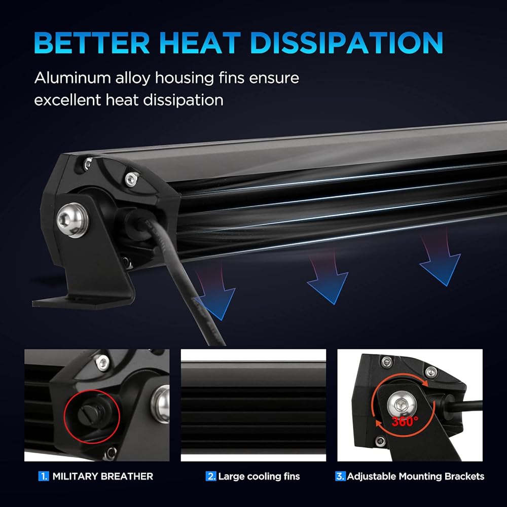 【درجة مقاومة للماء عالية الجودة】تتوافق المنتجات مع معايير IP68 وIP69K. تصميم متنفس عسكري مطبق لمنع التكثيف والضباب. إطالة عمر المنتج. يتم تحقيق الضغط التفاضلي لشريط الضوء المتوازن لتحقيق التوازن الحراري. دع حبات المصباح المختومة تتمتع بتبديد أفضل للحرارة. تعزيز استخدام الموثوقية في البيئة القاسية.