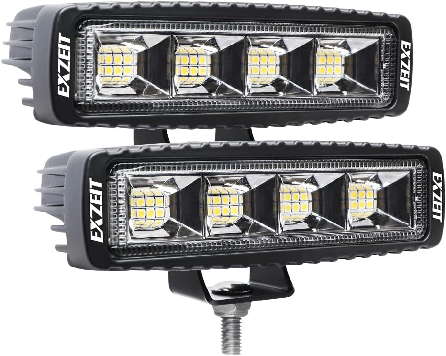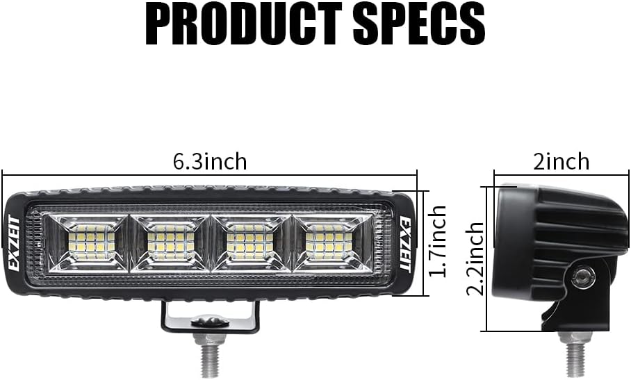 شريط إضاءة EXZEIT 72 وات 6 بوصة، ضوء فيضانات 5000 لومن، ضوء احتياطي للضوء العكسي لجرار الثلج، شاحنة حرث الثلج، قارب SUV ATV، 12/24 فولت