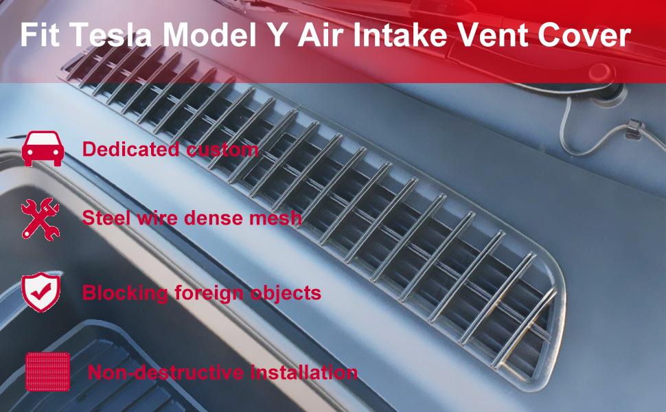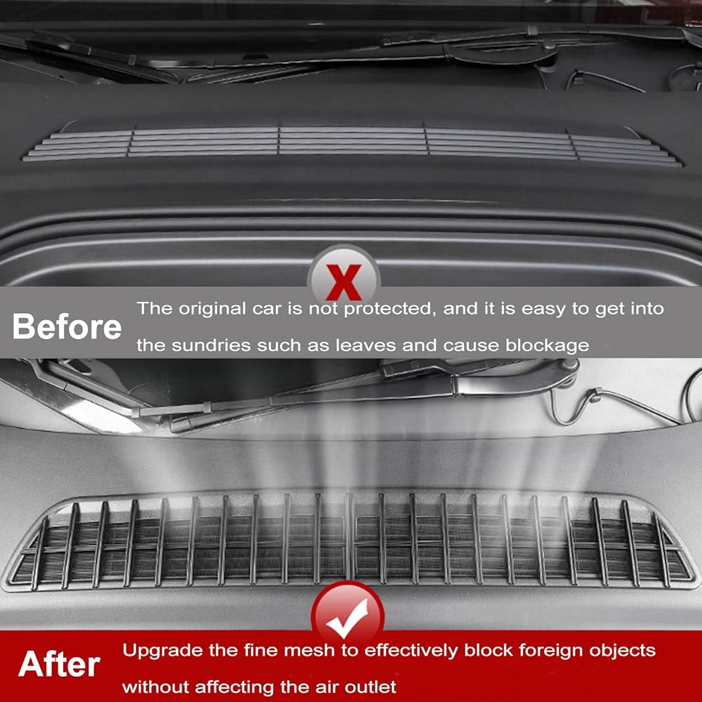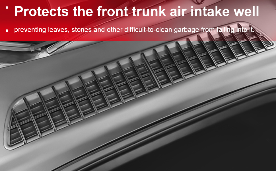 - حماية فعالة: تحمي شبكة سحب الهواء من تيسلا مدخل هواء الجذع الأمامي جيدًا، مما يمنع سقوط الأوراق والأحجار وغيرها من القمامة التي يصعب تنظيفها.