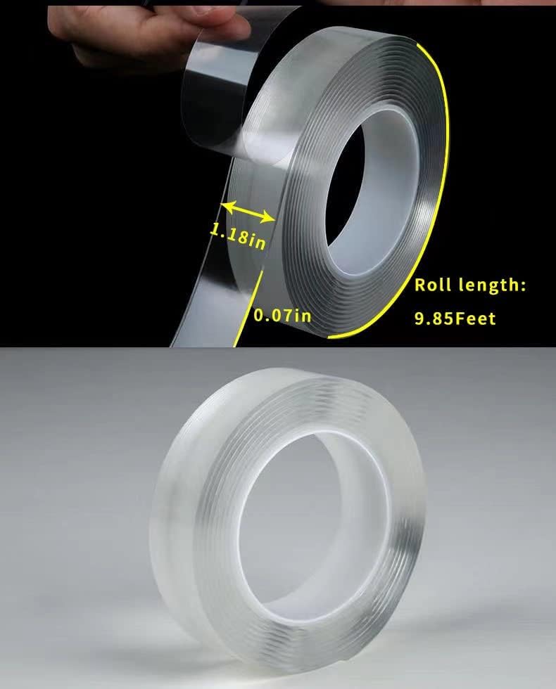 {Size and dimensions}: Our tape comes as per the mentioned dimensions Thickness/width/length(0.07in/1.18in/9.85ft) and is perfectly easy to be cut and hold the surface.