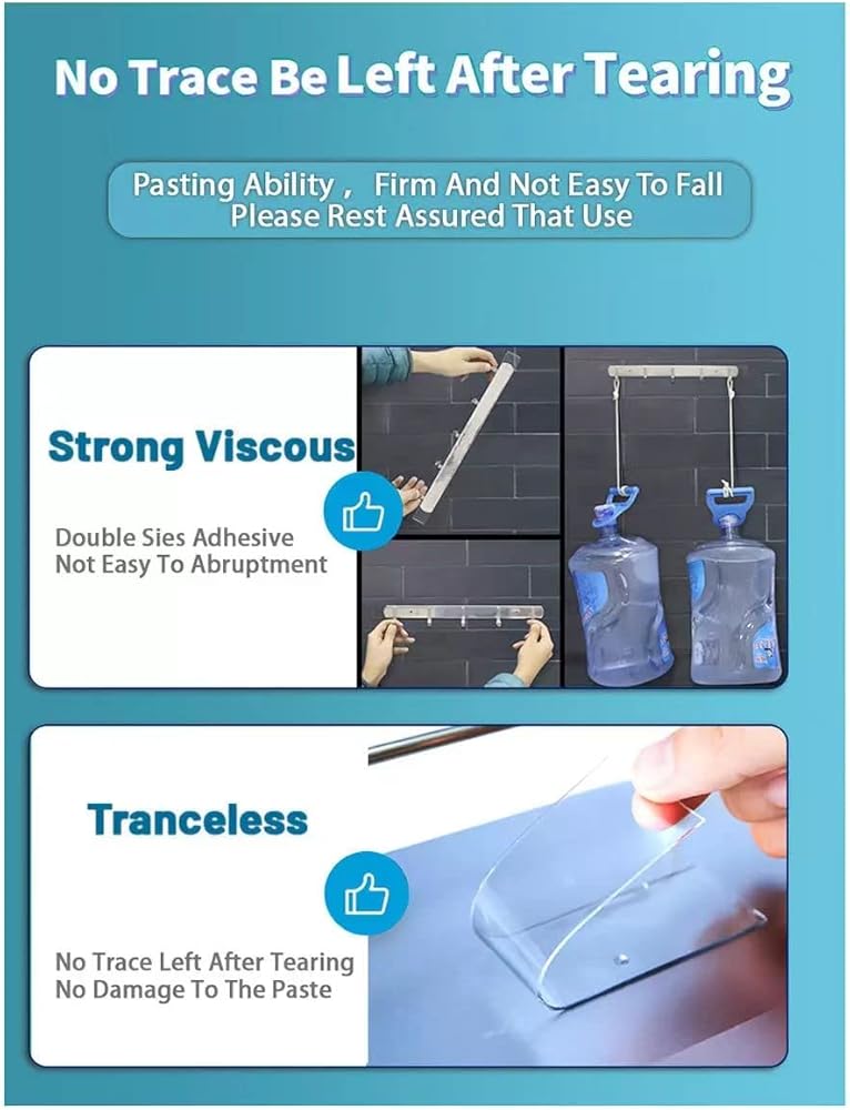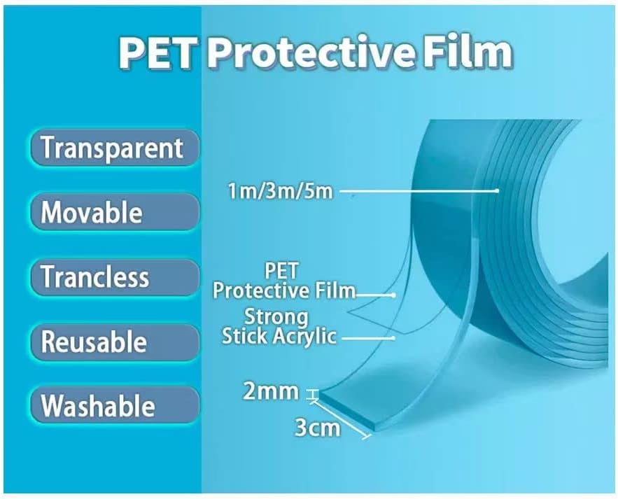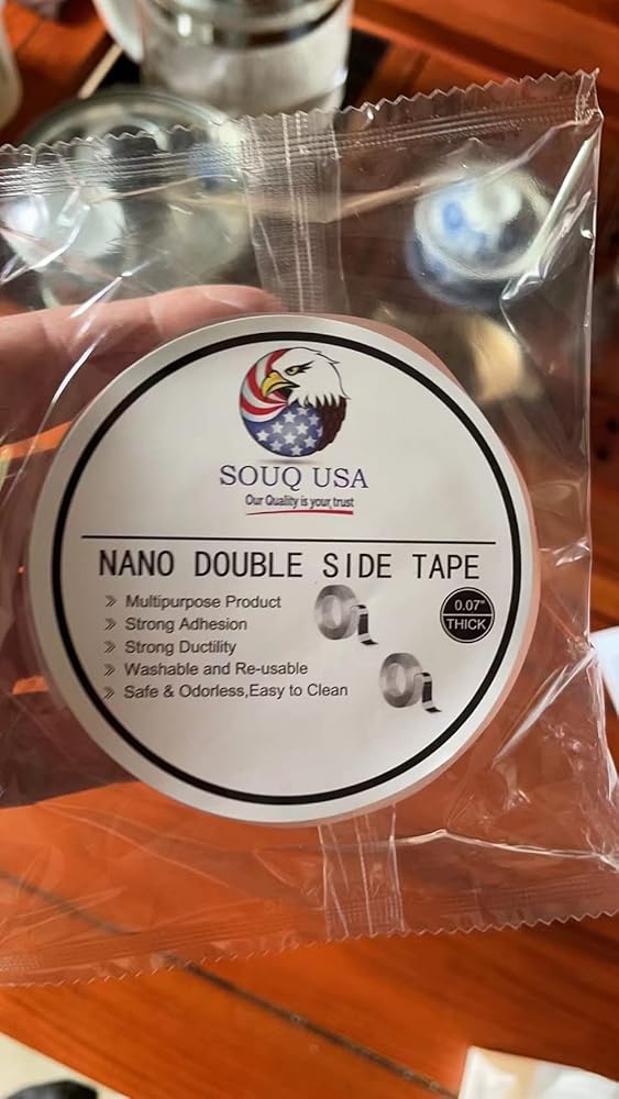 This clear double sided tape is a must have Adhesive in your home and can make a lot of your work in the household easier. Product Benefits: Get rid of the hooks in the wall & don't damaging your home walls. Just cut it, stick it and mount anything & everything. Value Proposition: Our tape comes with the thickness of 0.07 inches, while most of the tapes in the market are 0.04 inch or less. The thickness helps you mount heavy items easily and holds them strong. IMPORTANT NOTES : - [ ] Please note that we don't recommend to use it on walls that have unsteady paints. Souq USA double sided tape is very sticky, please use it on a stable paint surface and avoid causing the wall surfaces to fall off while removing tape. - [ ] Make sure that the contact surface is clean and dry. Please hold the tape to the surface for at least 15 seconds so it can hold the surface perfectly. - [ ] Tips to remove: Use hot air from a hair dryer and soften the mounting tape. Use a sharp tool and slowly lift the adhesive tape from one side and then peel the tape off slowly. - [ ] Please keep the tape out of reach of children.