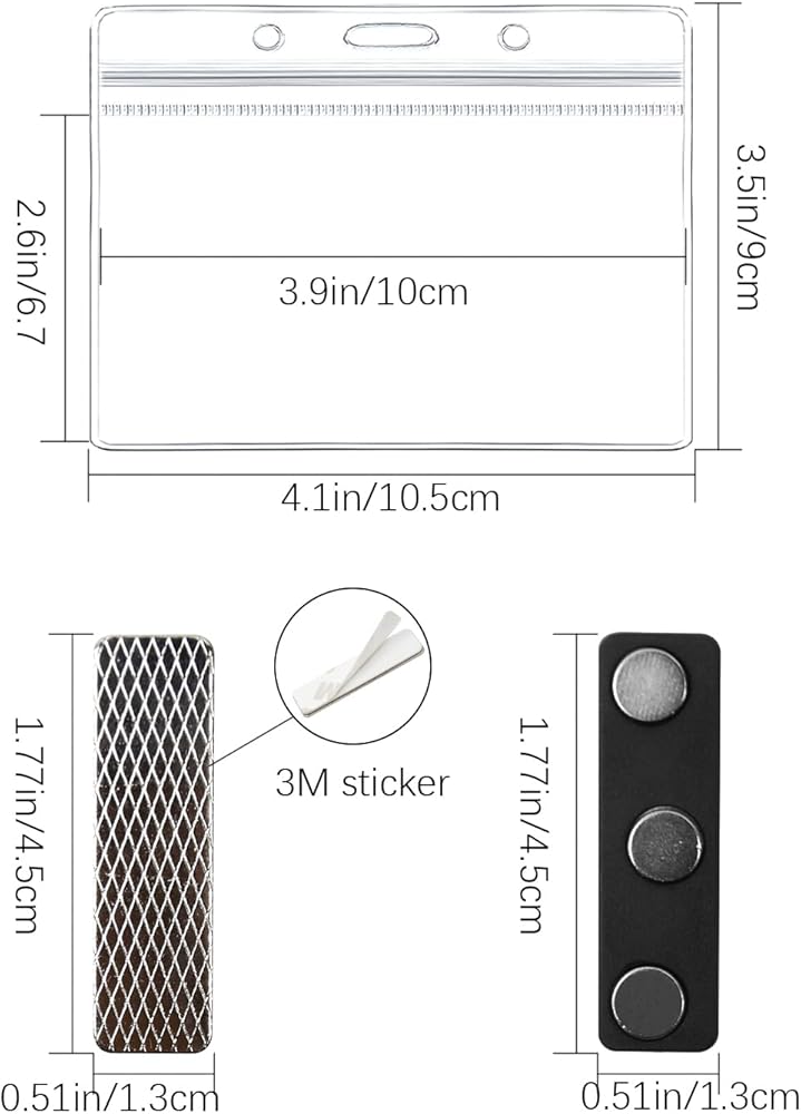 الحجم: حجم شارة الهوية المغناطيسية 1.77x0.51 بوصة/4.5x1.3 سم، حجم حامل شارة المغناطيسي الأكريليك 2.75x1.22 بوصة/7x3.1 سم