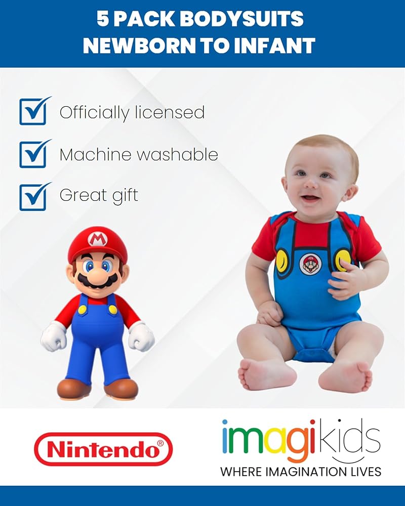 انضم إلى ماريو ورفاقه في أحدث مغامراتهم المثيرة! طفلك جاهز للمرح واللعب في هذه اللعبة التي تضم ماريو ولويجي والأميرة بيتش وباوزر وتود ويوشي وجميع شخصيات ألعاب الفيديو المفضلة لديهم. ألبس لاعبك الصغير هذا البدلة الرائعة ذات الأكمام القصيرة من نينتندو سوبر ماريو وسيقولون، "إنه أنا، ماريو!" حالا.
