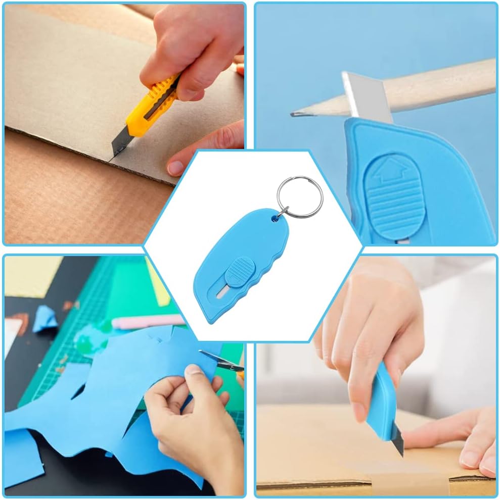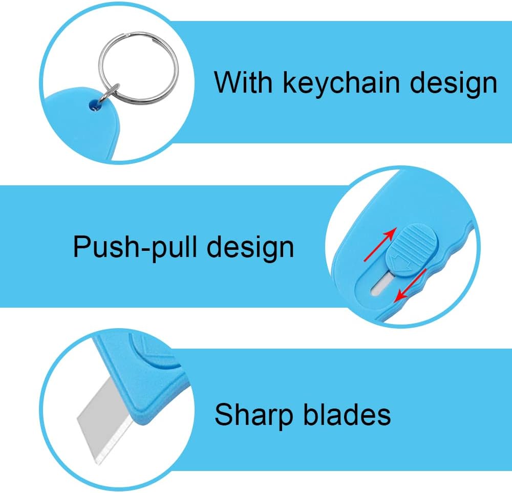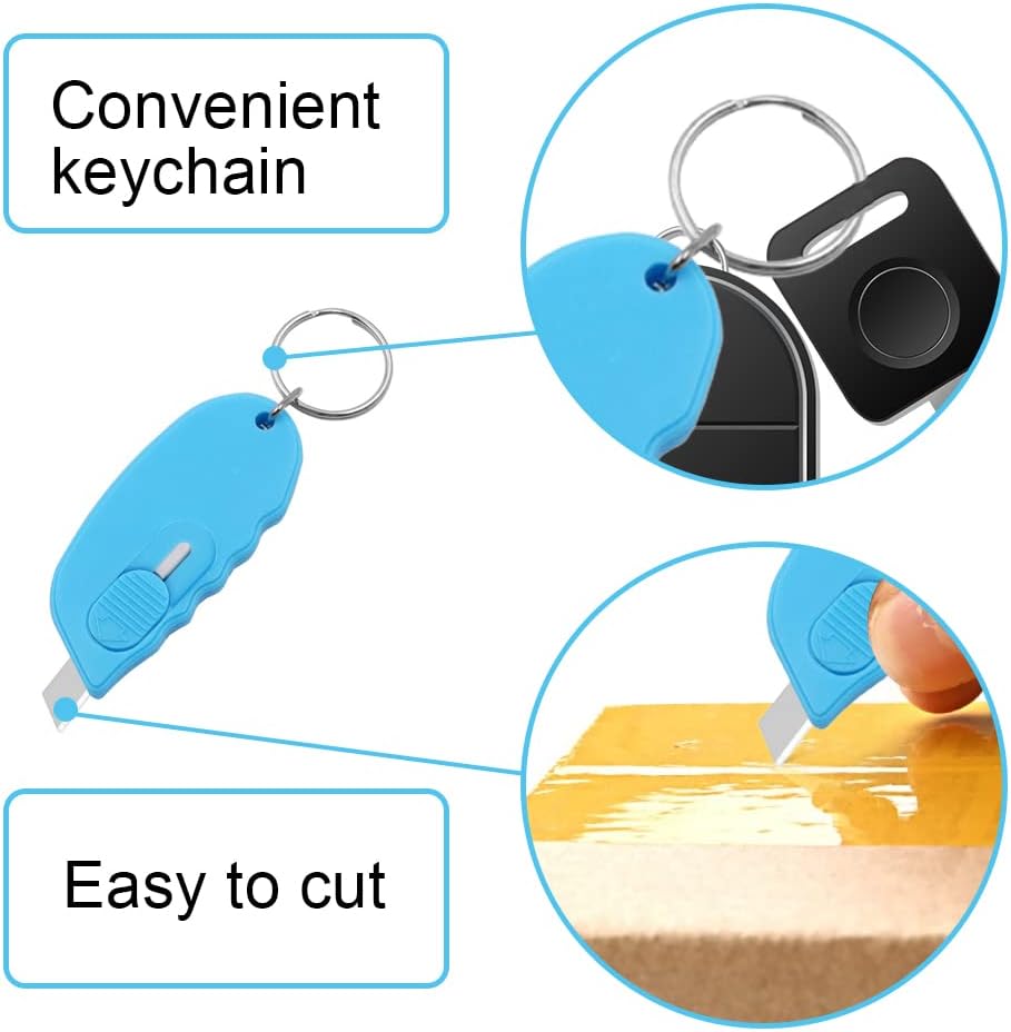 Mini Box Cutter Portable Mini Cute Keychain Box Cutter Retractable Shrink Wrap Box Opener Tool Retraction Letter Cutter Utility Knife for Office Home Business Travelers