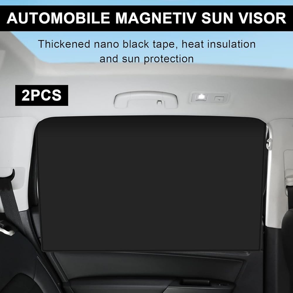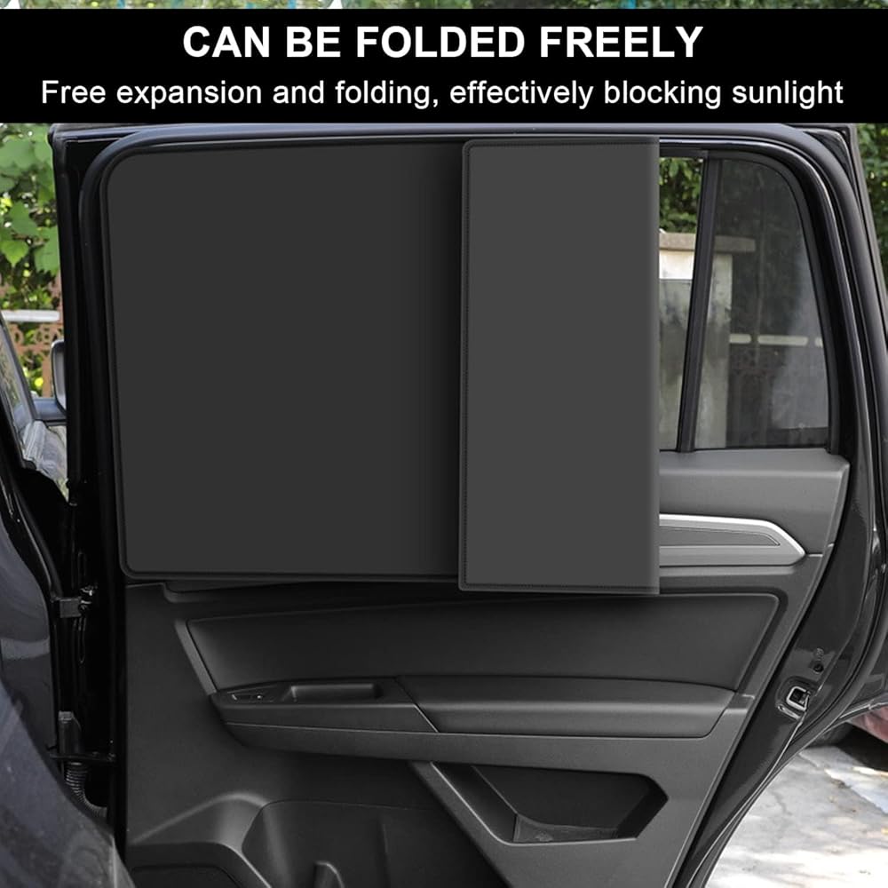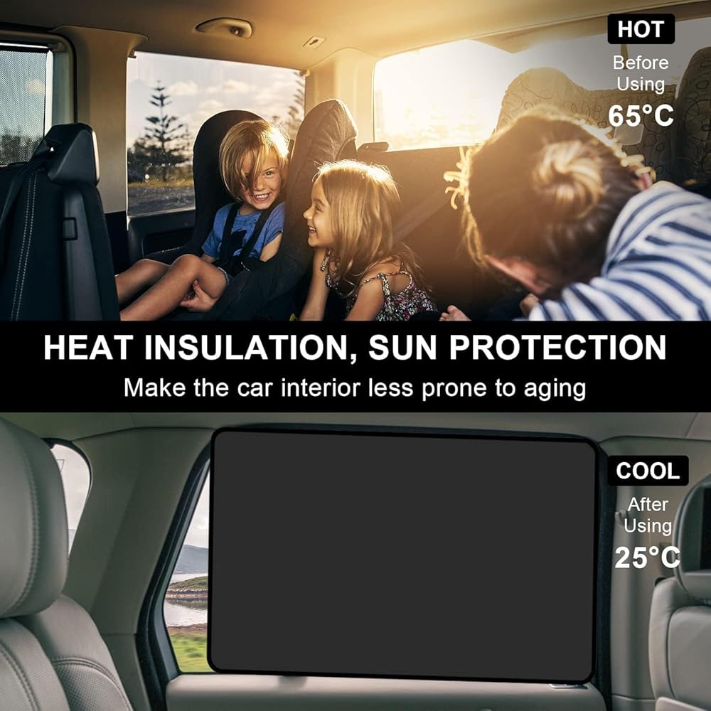 Advanced Sun Protection: The 2024 upgraded car window sunshades, crafted with high-quality heated nano black tape and polyester, offer a high-end look while blocking out UV rays, reducing interior heat, and preventing sunburn—perfect for protecting your family's skin and your car's upholstery.