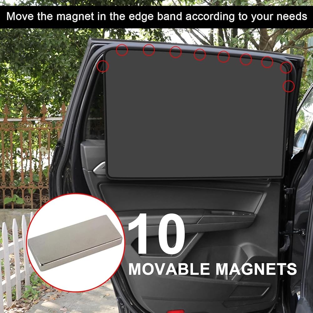 Universal Compatibility & Easy Install: With strong magnets for attachment, it has 10 strong magnets on the top of the shade that can be mounted on the steel car side window frame. These sunshades fit a wide variety of vehicles including sedans, SUVs, and vans, and install in just a minute. They are easily foldable for storage when not in use, ensuring your car stays neat and tidy.