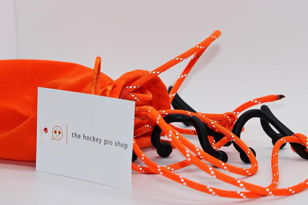 تخزين مريح: يأتي كل رف تجفيف مع حقيبة برباط برتقالية زاهية، مما يجعل من السهل العثور عليها في حقيبة الهوكي الخاصة بك. كما أنه يمثل هدية رائعة لأي لاعب هوكي (وأم)! بالإضافة إلى ذلك، فهو يشتمل على ملصق متجر الهوكي الاحترافي لمزيد من الذوق