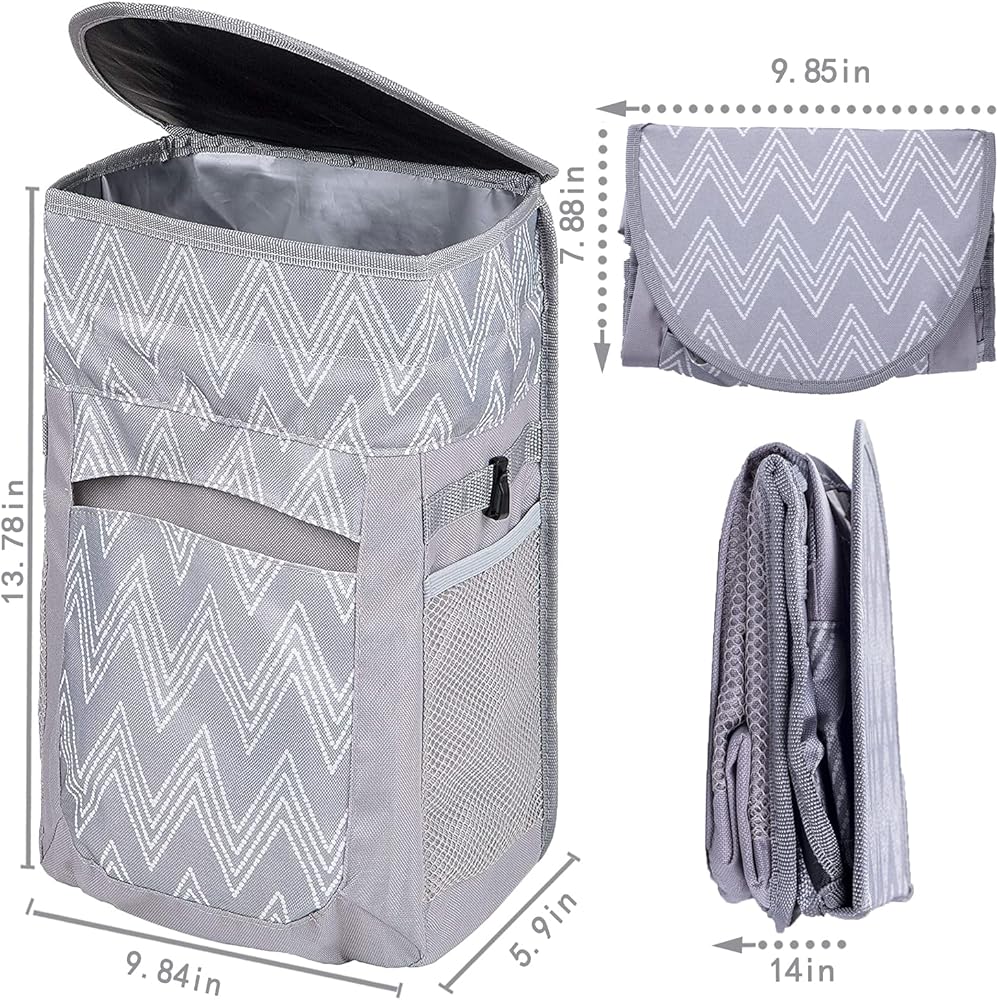 【سعة كبيرة وقابلة للطي】تحتوي سلة مهملات السيارة بسعة 2.5 جالون على 3 جيوب تخزين (حقيبتان شبكيتان في الجانب وحقيبة أمامية كبيرة) حتى تتمكن من استخدامها كمنظم سيارة لحمل هاتفك أو كابل الشحن أو غيرها من الأدوات الصغيرة التي تحتاجها. قد تحمل معك على الطريق. كما أنها رائعة لتخزين المناديل والأكياس البلاستيكية وغيرها من العناصر المفيدة التي قد تحتاجها.