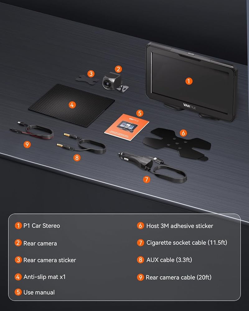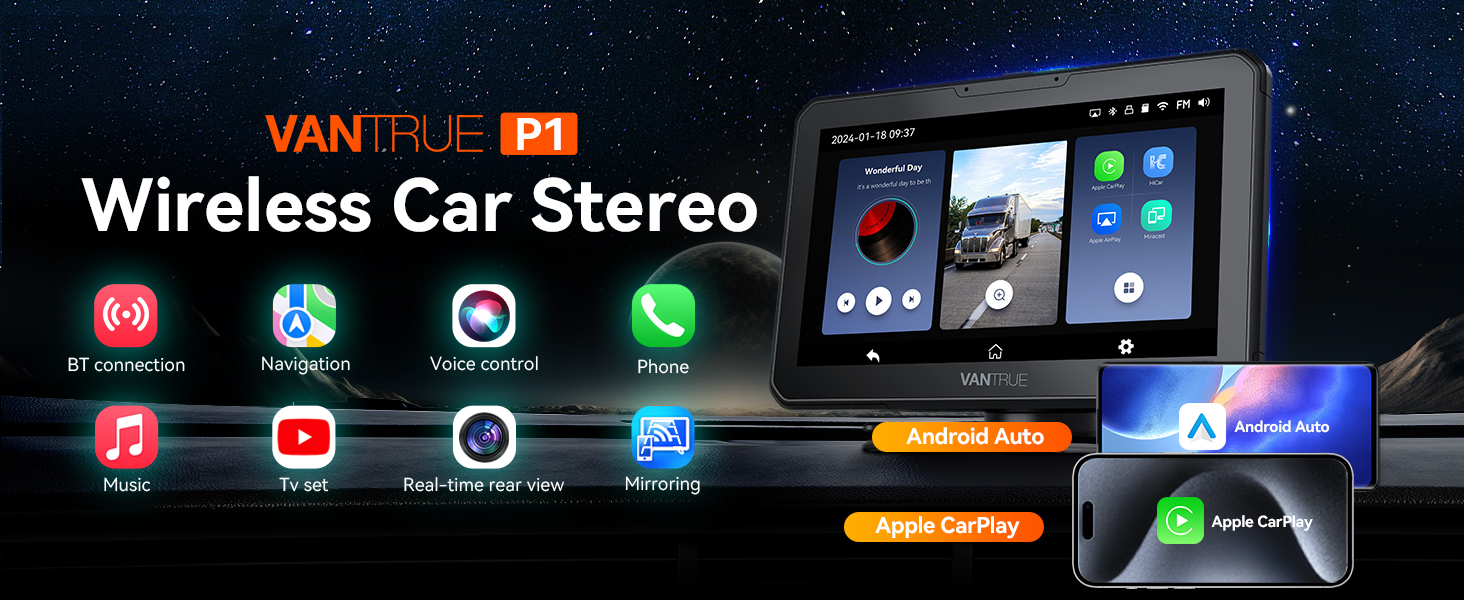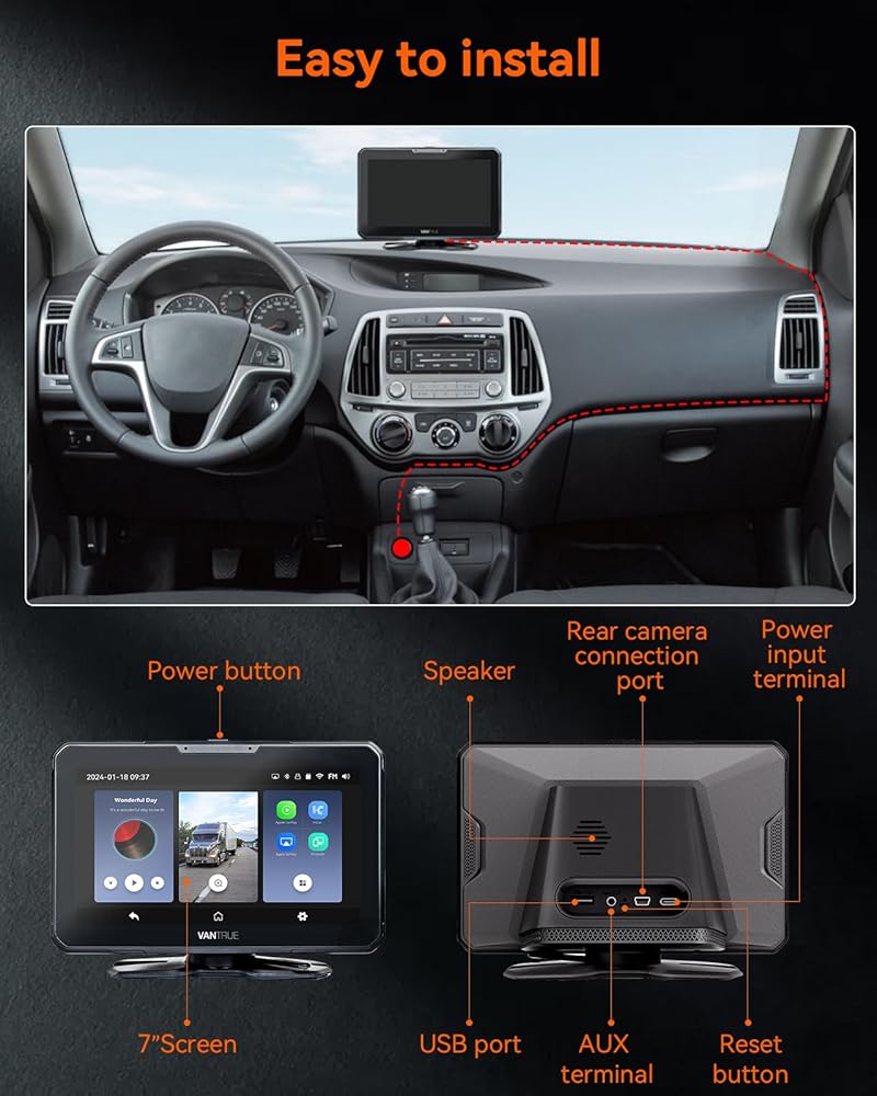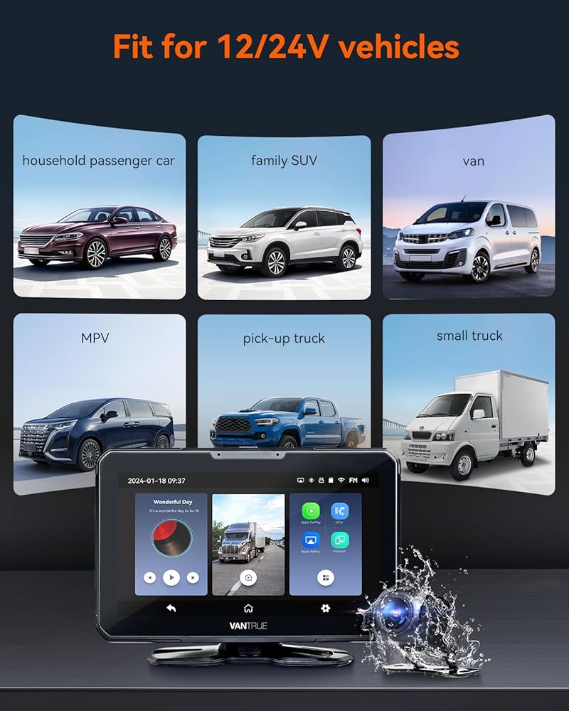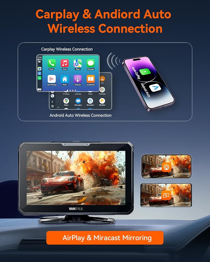 Vantrue جهاز Apple Carplay اللاسلكي المحمول & Android Auto Car Stereo مع كاميرا احتياطية 1080P، شاشة لمس 7 بوصة مع نظام ملاحة GPS، وصلة مرآة، بلوتوث، التحكم الصوتي، مدخل FM/AUX/TF للسيارات 12/24 فولت