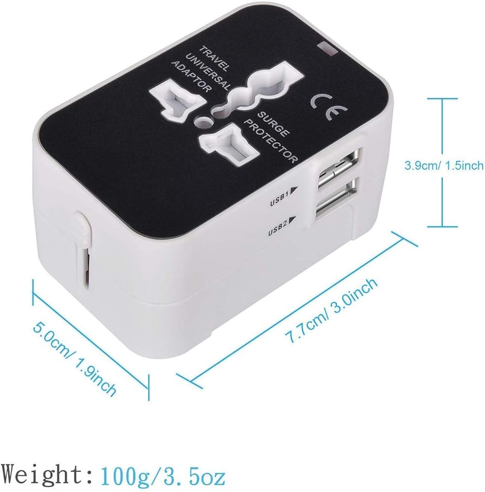 محول السفر الرقمي LKY، محول طاقة عالمي الكل في واحد، شاحن حائط عالمي بقابس تيار متردد مع منافذ شحن USB مزدوجة للهواتف المحمولة الأمريكية والاتحاد الأوروبي والمملكة المتحدة وأستراليا وأوروبا (أبيض)