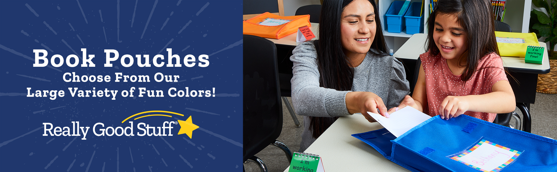 Safely Send Home Books And Assignments With This All-Fabric Book Pouch Set In A Variety Of Colors. Really Good Stuff offers the Most Durable Book Pouches on the Market and the Largest Variety! Great organizational tool to have at school, home, or BOTH! Use to bring assignments from school to home and back (in one piece). Use at home to keep organized by labeling each pouch by subject, book genre, etc. This is also a convenient way to keep books, folders, flash cards and homework organized at school or at home. Teachers can use these pouches to easily manage reading groups. Students can use them as they work independently or during reading or math centers. Book pouches are water resistant and also perfect for younger kids to use as an alternative to backpacks, that are often too large for them.