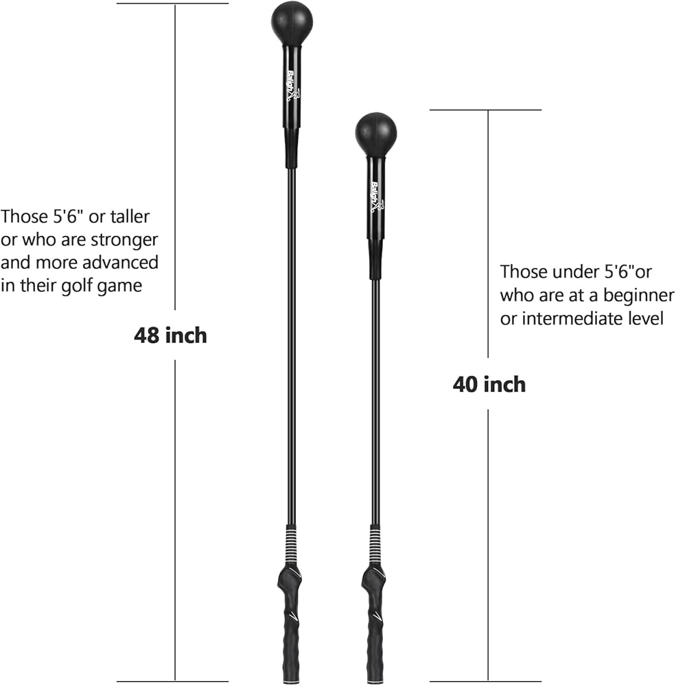 دليل المقاسات: يوصى باستخدام مدرب الجولف مقاس 48 بوصة للأفراد الذين يبلغ طولهم 5'6 بوصة أو أطول، والطول 40 بوصة مثالي لأولئك الذين تقل أعمارهم عن 5'6 بوصة