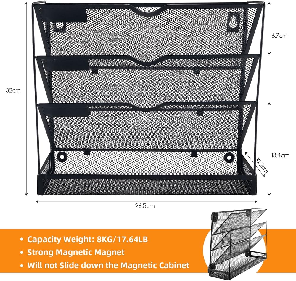 ✅حامل ملفات شبكي مغناطيسي قوي للغاية --- توجد أربع فتحات في الجزء الخلفي من منظم الملفات الذي تمت ترقيته. يمكنك استخدام البراغي والكتل المغناطيسية المجهزة خصيصًا لدينا لاختيار طرق استخدام أكثر إبداعًا وفقًا لاحتياجاتك. يمكن للكتلة المغناطيسية الفريدة أن تتحمل ما يصل إلى 14.3 رطل. قبل مغادرة المصنع، تخضع جميعها لاختبارات التحمل الصارمة، لذلك يمكنك شراؤها بثقة