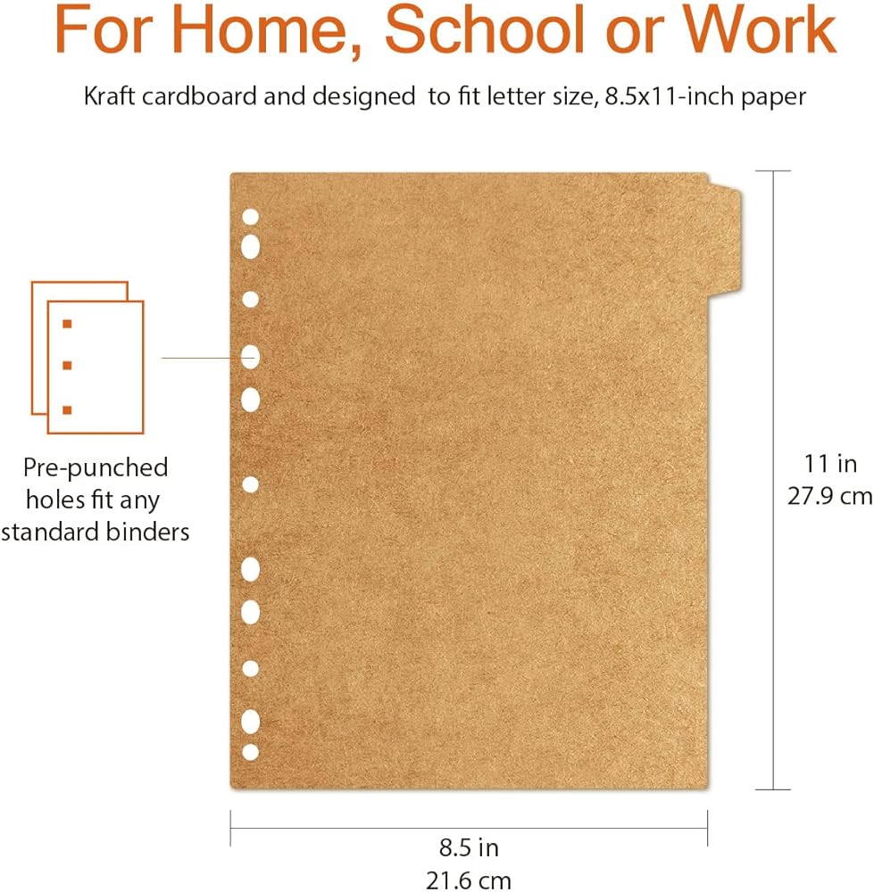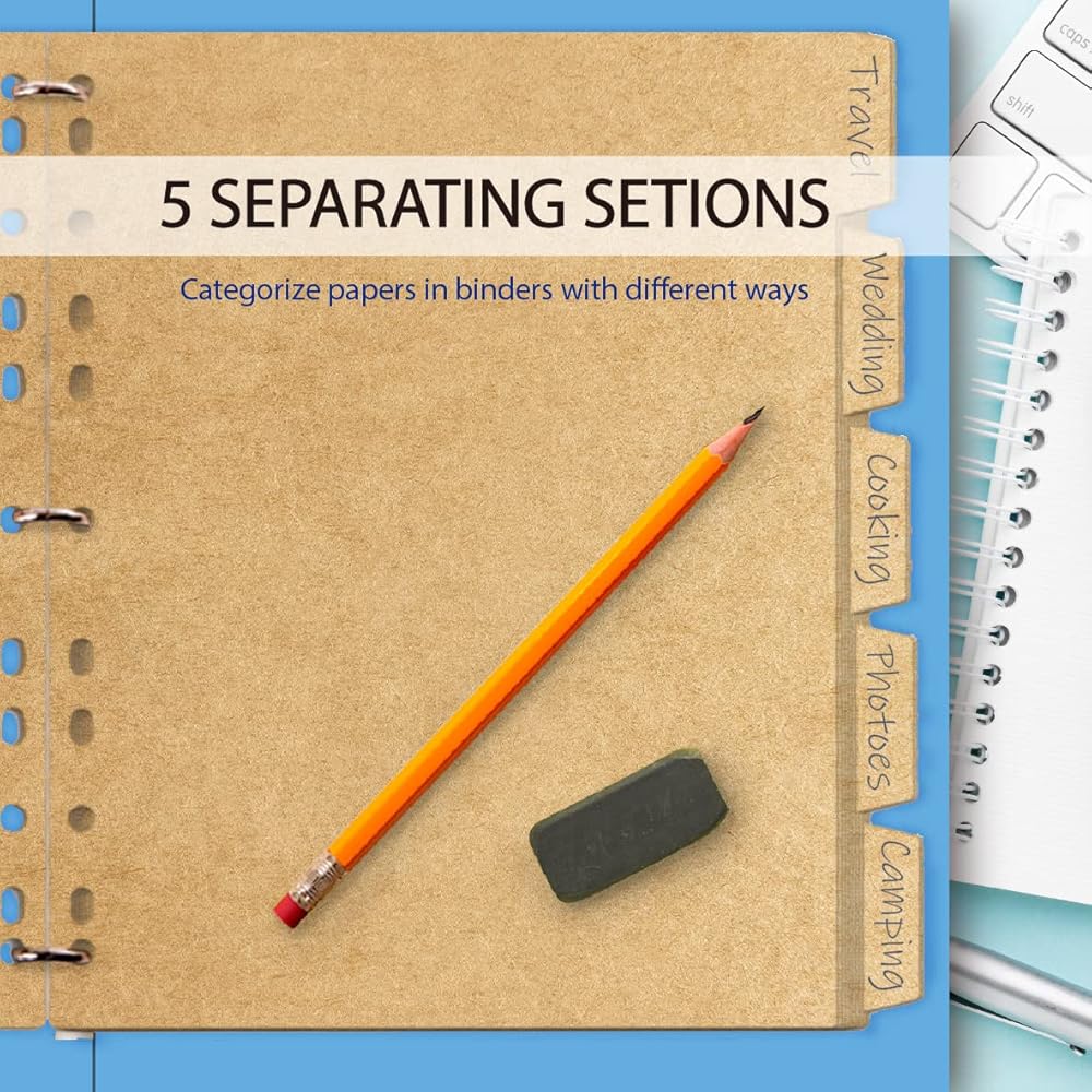 Premium cardboard paper: These binder divider with 5 tabs are made of quality kraft cardboard paper, sturdy and thick, great paper dividers for 3 ring binder, could be used for a long time.