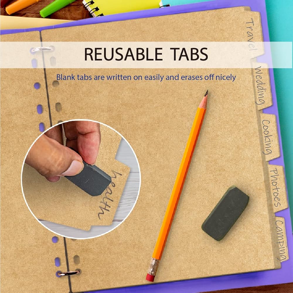 Package Includes: The package of the tab dividers for 3 ring binder comes with 4 sets cardboard paper dividers with tabs (5 sheets per set), total 20 sheets, heavy wear-resistant paper, great binder index dividers for women, boys, girls and kids to take notes and draw diagrams every time.