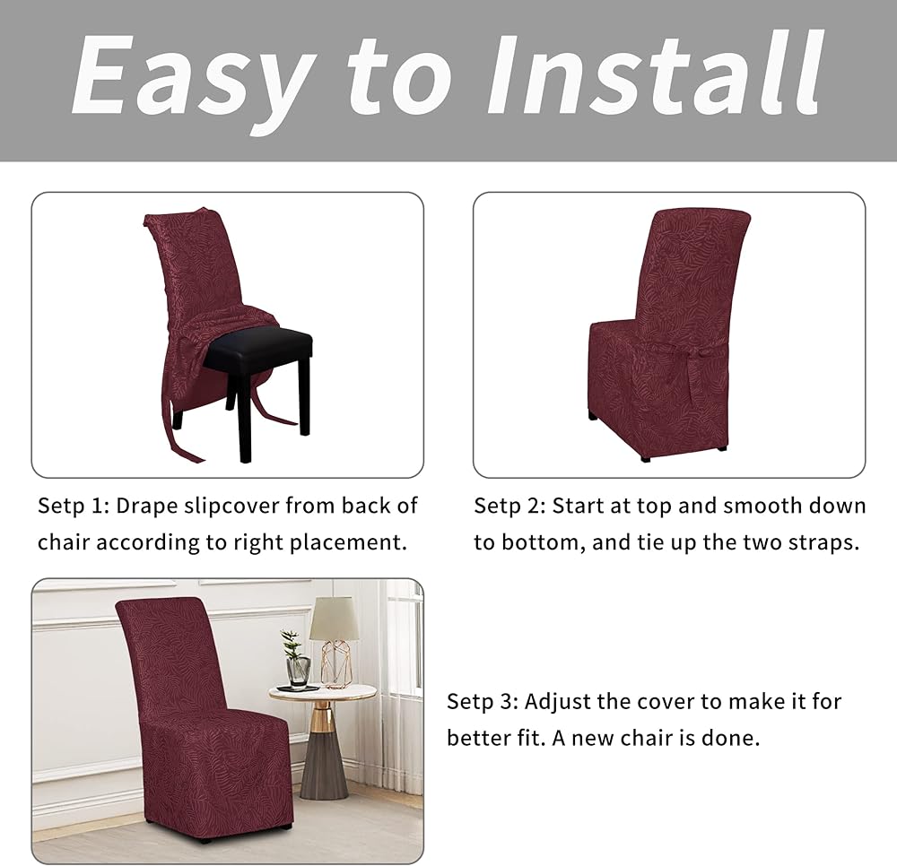 • تصميم خاص: غطاء كرسي الطعام هذا مصنوع من قماش الجاكار بنمط أوراق الشجر الرشيقة، والذي يمكن أن يحول كرسيك القديم إلى جديد تمامًا، وينعش ديكور منزلك، ويطيل عمر الكرسي.