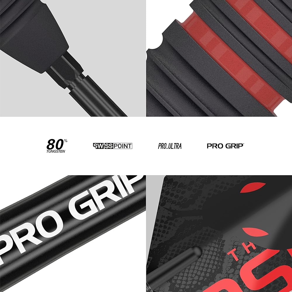 • تحتوي العبوة على - 3 × براميل رمي السهام، 3 × عمود أسود قصير من Pro Grip، 3 × رحلات طيران رقم 6، 3 × نقاط سويسرية سوداء ناعمة، 1 × أداة سويس بوينت، 1 × علبة سهام