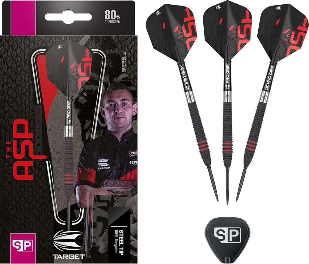 • معتمد من اللاعب - تم إنشاؤه وتطويره بواسطة أفضل لاعب PDC ناثان أسبينال - ناثان أسبينال 80 أسود The Asp Darts 24 جرامًا من التنجستن سويس بوينت ستيل تيبس