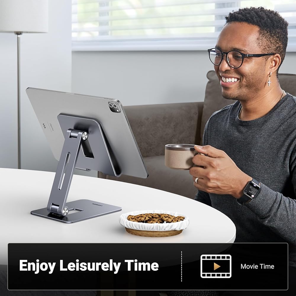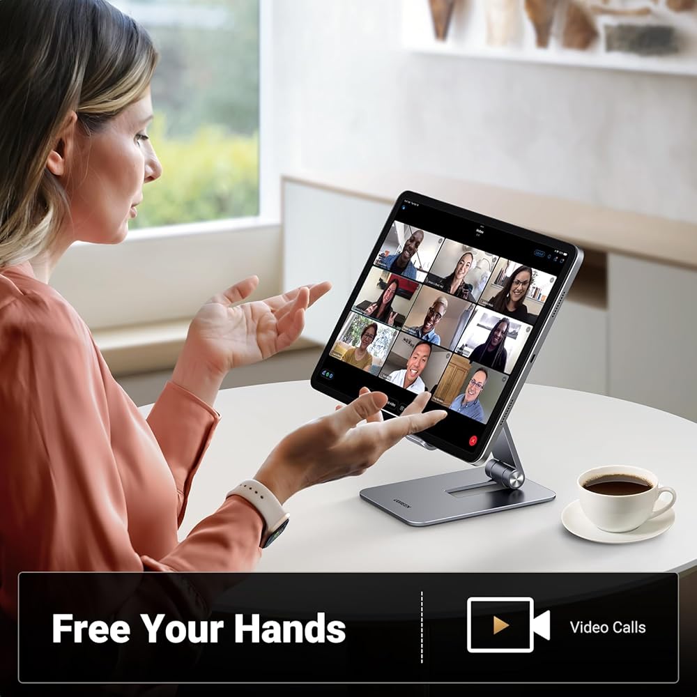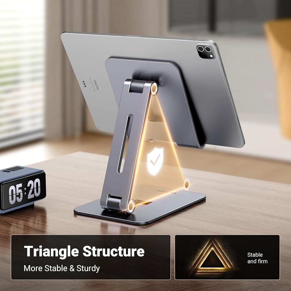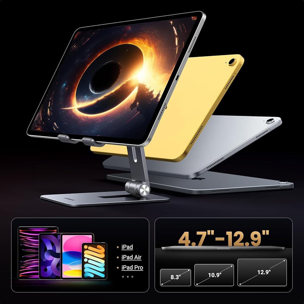 حامل تابلت من يوجرين للمكتب، حامل تابلت من الألومنيوم قابل للتعديل، حامل محمول قابل للطي ملحقات مكتب المنزل متوافق مع iPad Pro 12.9/ iPad Air/ipad Mini 6/5