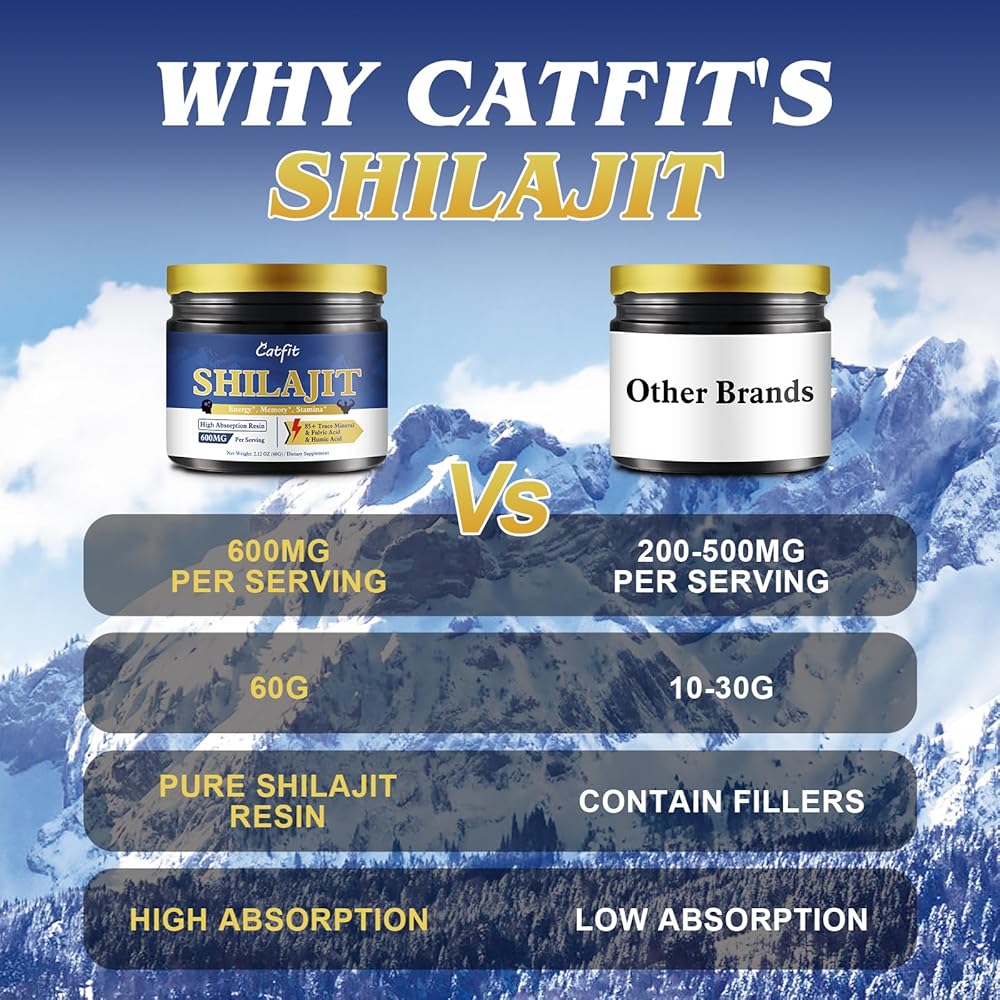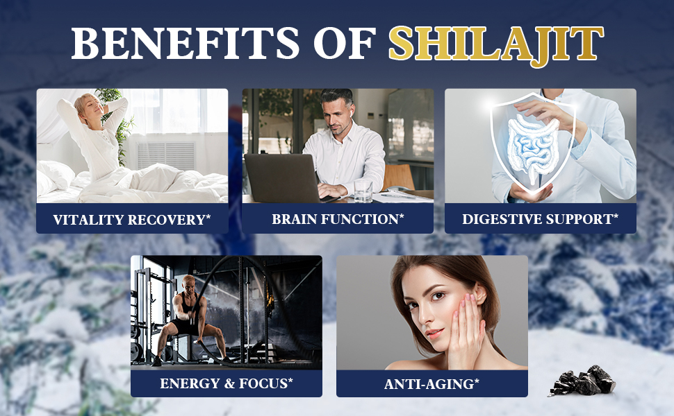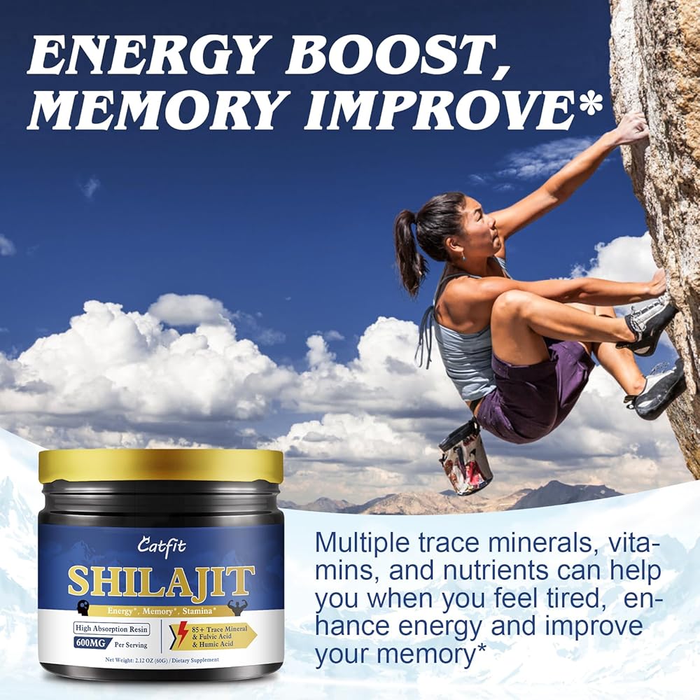 قل وداعًا للتعب: راتنج الشيلاجيت غني بالفيتامينات والمكونات الطبيعية المنشطة للمناعة، والتي يمكنها تعزيز جهاز المناعة ودعم المشاعر والطاقة والهضم وتقليل التعب، وتساعد الصحة العامة، وتساعدك على تحقيق التوازن بين الجسم والعقل.