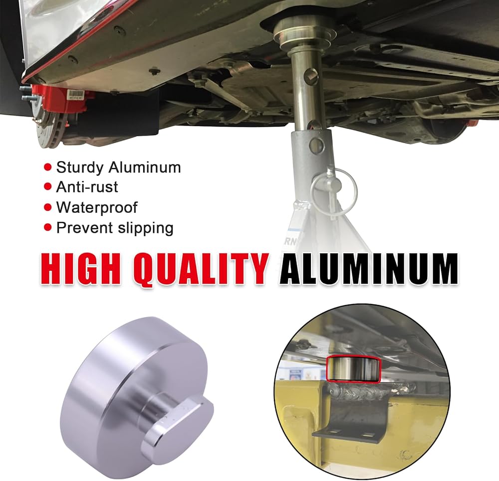 • 【أخدود مضاد للانزلاق بدائرة متحدة المركز】وسادات الرفع والرفع مصنوعة بالكامل من الألومنيوم مصممة خصيصًا لأخدود غير قابل للانزلاق على شكل دائرة متحدة المركز في الجزء السفلي لمزيد من تثبيت المقبس ومنع تلف السيارة في حالة وقوع حوادث.