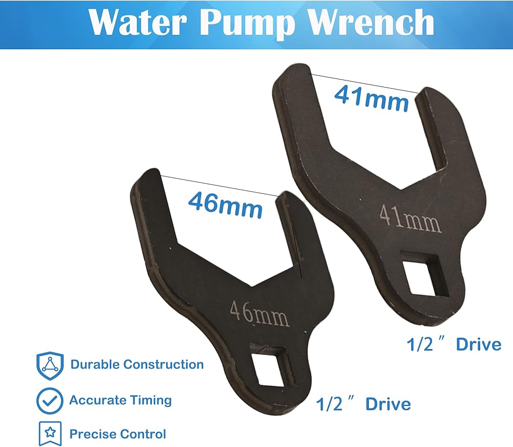 • أكثر احترافية - بالمقارنة مع الأدوات الأخرى، لدينا مفتاحين 41 مم و46 مم يسمحان بتعدد الاستخدامات ويضمن أن لديك الأداة المناسبة لتكوينات مضخة المياه المختلفة في المحرك. فهو يساعد على منع تلف أدوات التثبيت ويضمن قبضة آمنة، مما يجعل عملية الإزالة والتركيب أكثر كفاءة وفعالية.