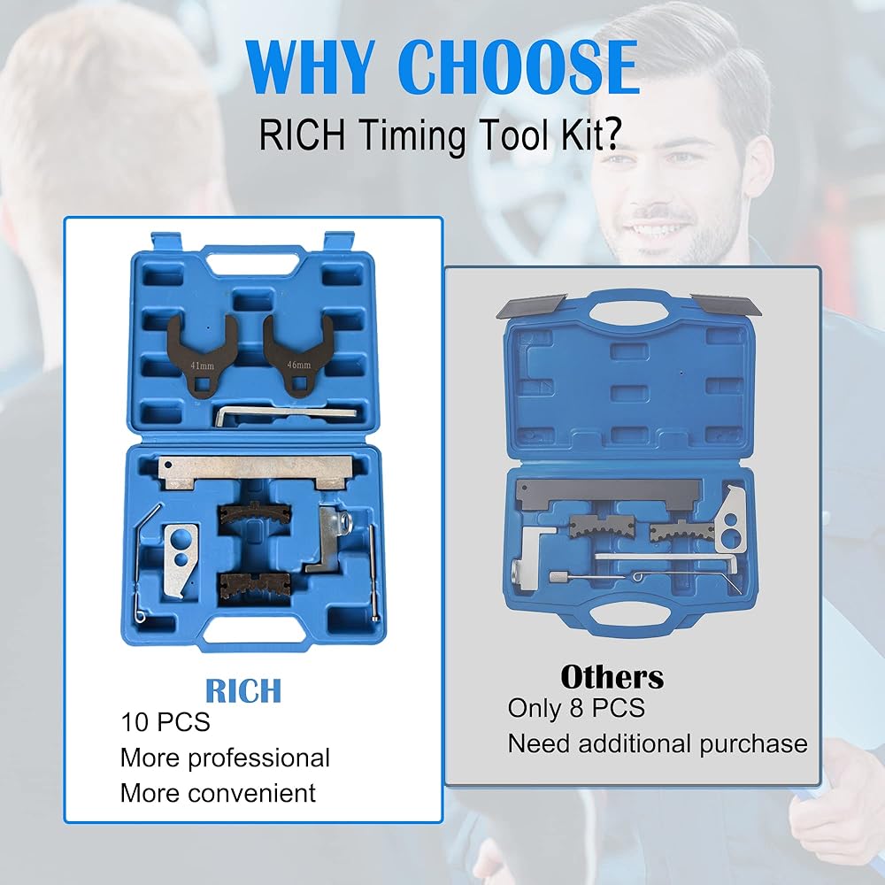 • توقيت دقيق - تساعد أداة محاذاة عمود الكامات الغنية على ضمان محاذاة توقيت دقيقة لأعمدة الكامات. من خلال تثبيت أعمدة الكامات في مكانها بشكل آمن، تسمح المجموعة بإجراء تعديلات دقيقة ومحاذاة مع العمود المرفقي ومكونات المحرك الأخرى. وهذا يؤدي إلى الأداء الأمثل للمحرك، وكفاءة استهلاك الوقود، والتشغيل السلس.