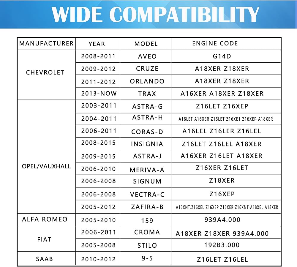• التوافق وتعدد الاستخدامات - تتوافق أدوات قفل المحاذاة لدينا مع مجموعة كبيرة من المحركات بما في ذلك تشيفي: محرك كروز / أفيو / أورلاندو 1.4 1.6 1.8 لتر؛ يناسب محرك Astra-G-C/Corsa-D/Insignia/Mervia/Vectra-C/Zafira-B محرك 1.6 سعة 1.8 لتر؛ تناسب ألفا روميو 159؛ تناسب محرك فيات كروما/ستيلو 1.8 لتر. رمز المحرك المناسب: 1.4 16 فولت: G14D؛ 1.6: A16LEL، A16LER، A16LET، A16XER، LDE/A16LER، LDE/A16XER، LLU/A16LET، Z16LEL، Z16LER، Z16LET، Z16XE1، Z16XEP، Z16XER؛ 1.6 إيكوفليكس CNG: A16XNT، LGE/A16XNT، Z16XNT؛ 1.8: 2HO/A18XEL، 2HO/A18XER، A18XER، Z18XER، 939A4.000