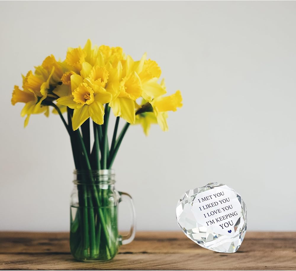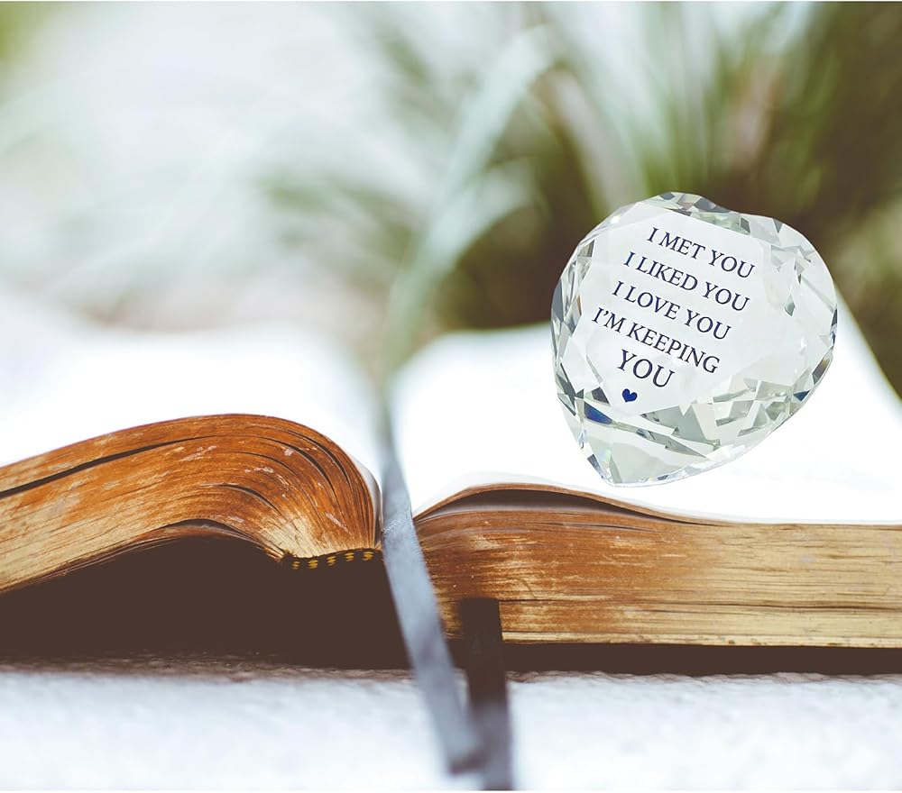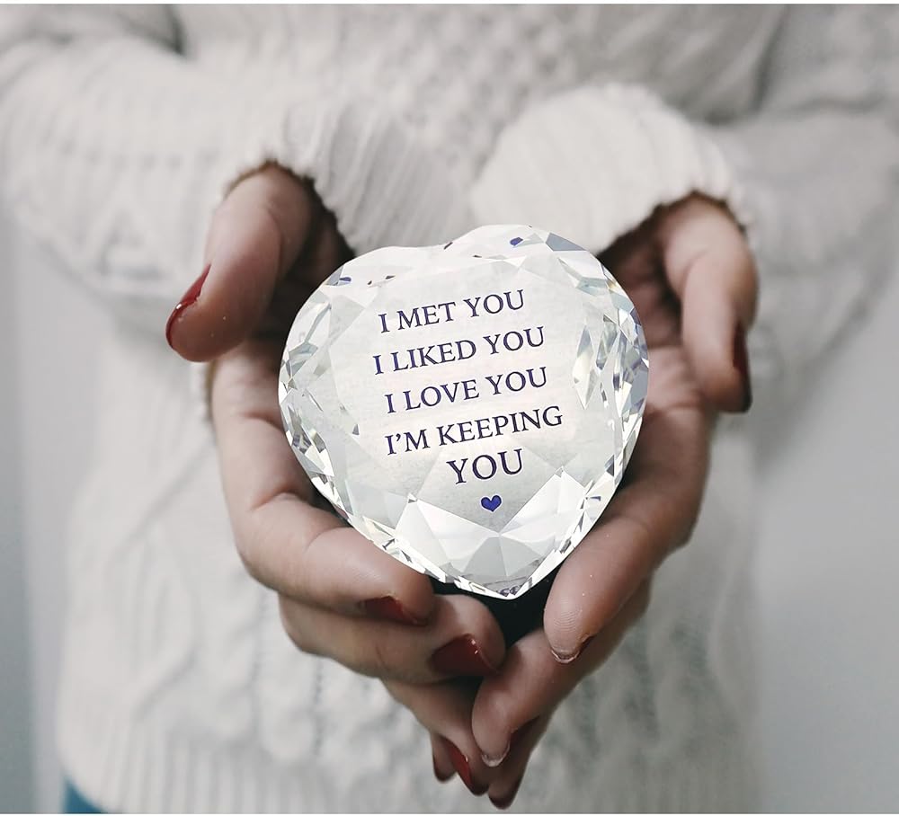 التقيت بك، لقد أحببتك، أنا أبقيك على شكل قلب كريستال ألماس 80 مم، ثقالة ورق ديكور، هدايا رومانسية لصديقتك وصديقها وزوجها، هدية حب لصديقتك في عيد الحب