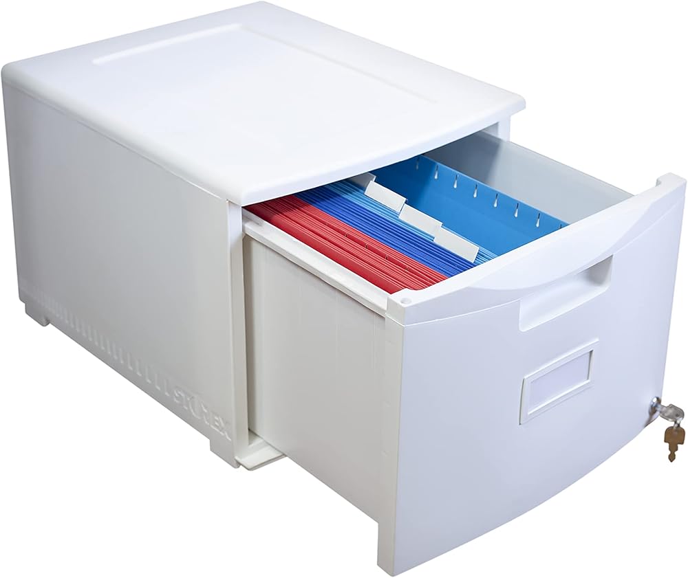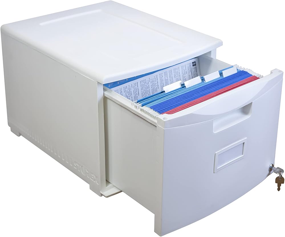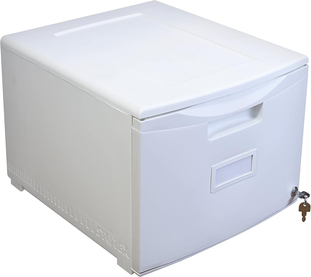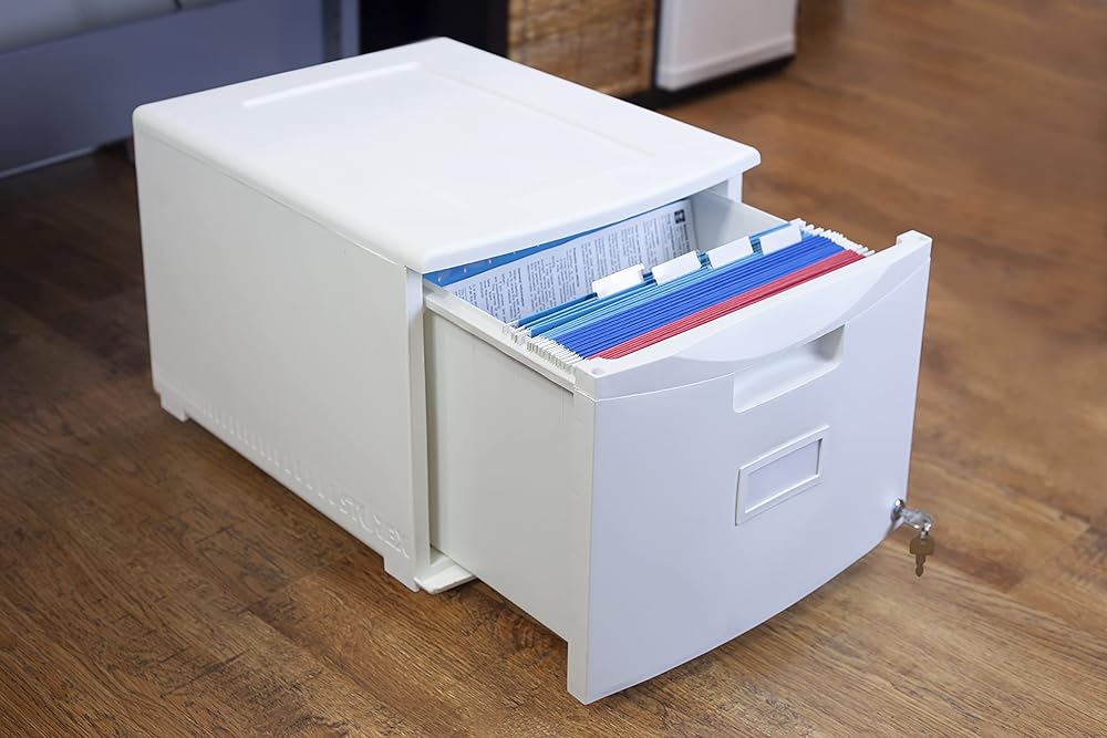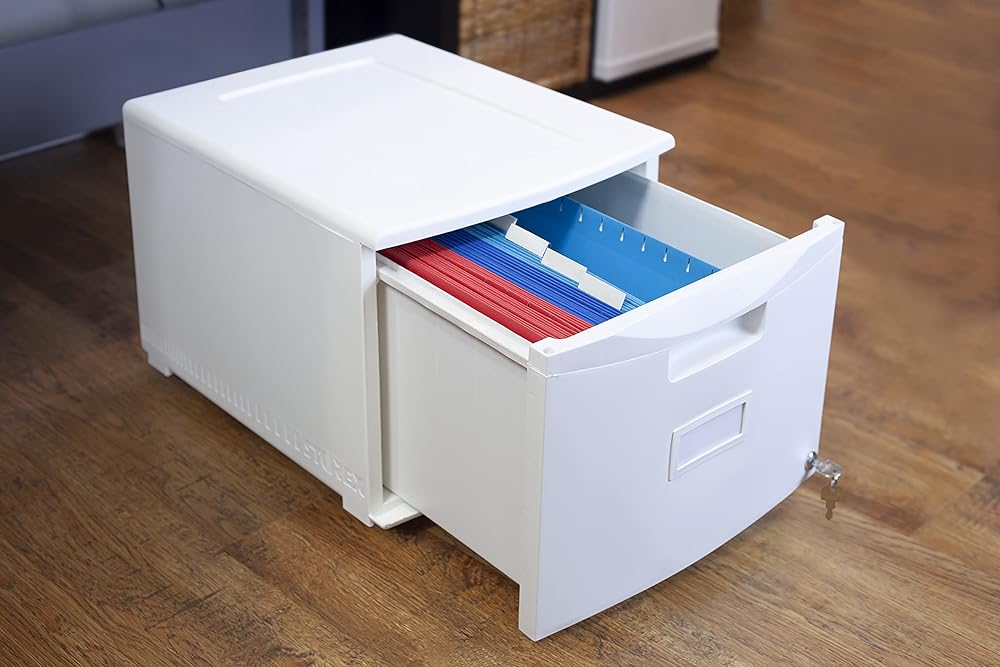 Storex Plastic One-Drawer File Cabinet – Locking Document Organizer with Casters for Home and Office, Black, 1-Pack (61264B01C)