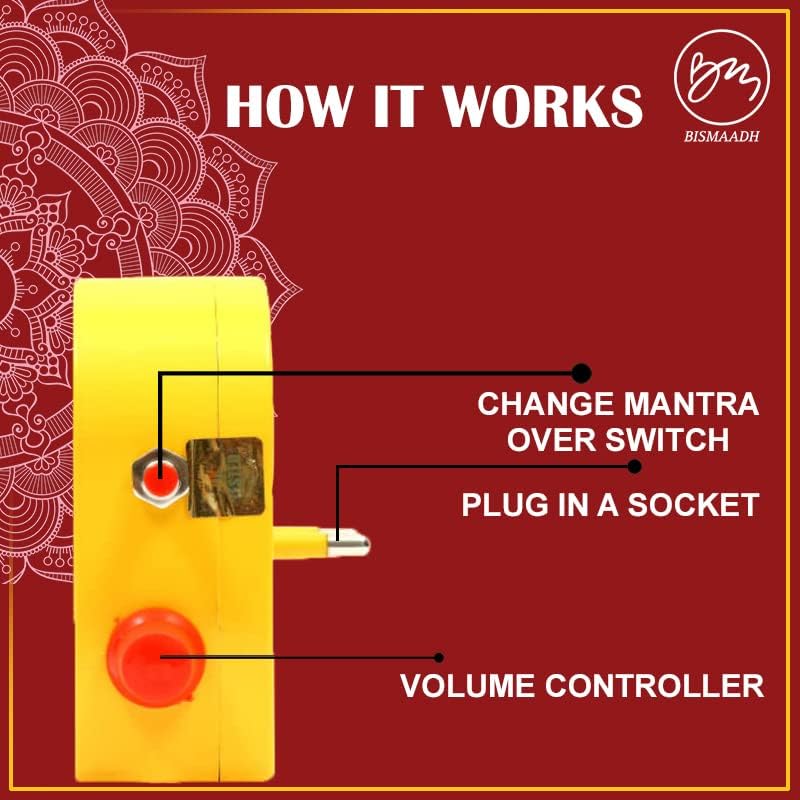 • ✅ Mantra bell has one volume controller & one push button for changing mantras according to your choice.. NEW heavy quality with heavy speaker Buy genuine and original product from Bismaadh Brand