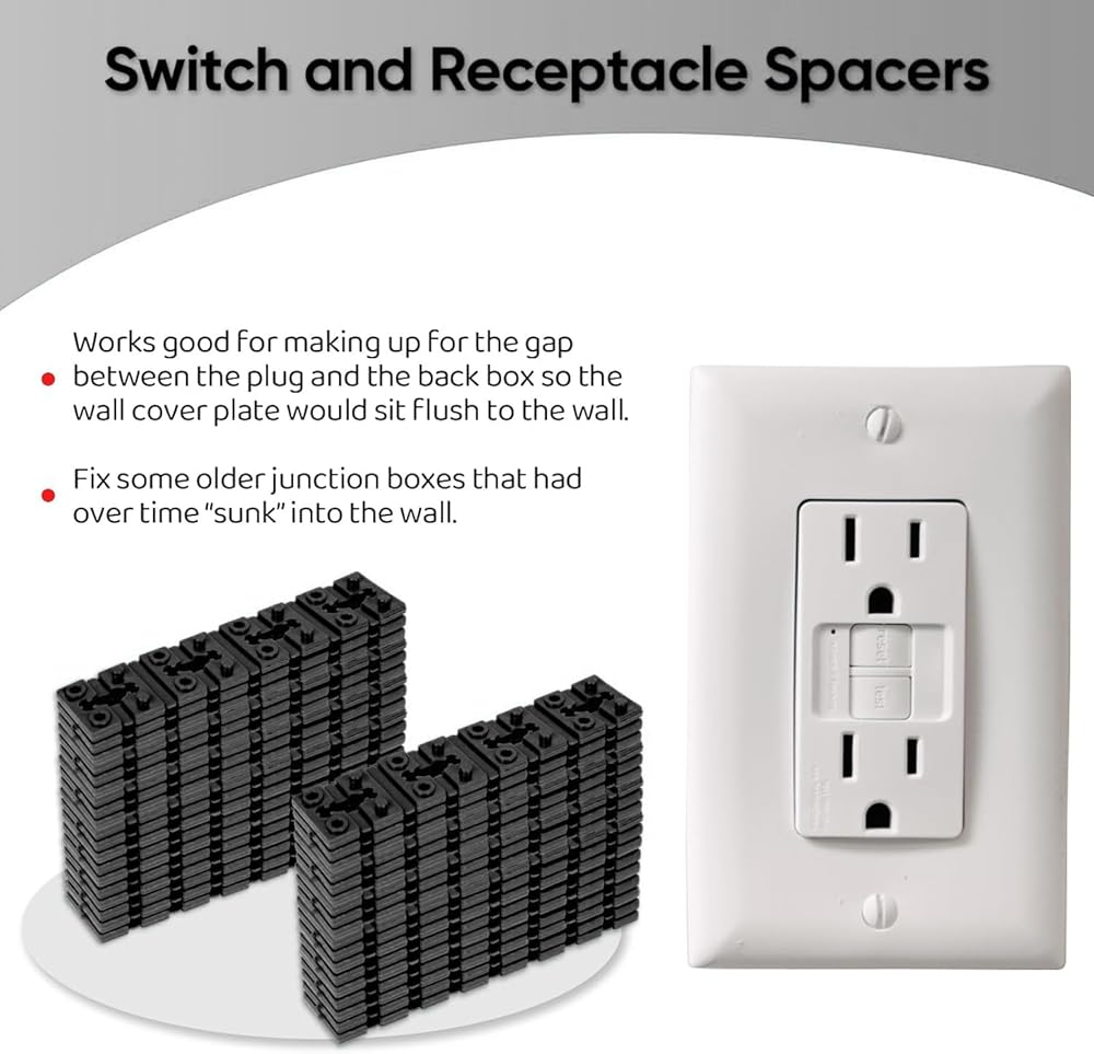 Switch and Receptacle Spacers Socket Outlet Shims Extender Kit for Tile Backsplash Loose Outlet Plug Fix Switch and Receptacle Spacers FOR Electrical Box Prevent Outlet Sinking and Loosening