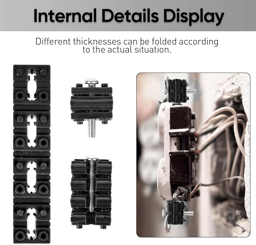 【SIMPLE AND FAST】This electrical outlet spacer design works wonderfully. The individual pieces can be stacked to create any thickness to suit the application and you don't need a tool to separate them. Not hard to rip apart. Easy to push in. Each loose outlet plug fix receptacle spacers provide solid support and save a lot of time aligning the modern receptacle boxes