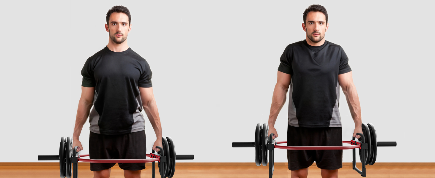 Benefits: The trap bar deadlift transfers some of the load from your back and hips to your legs, reducing the load on your lumbar spine, lifting without scraping your calves, and reducing the risk of bicep tears.
