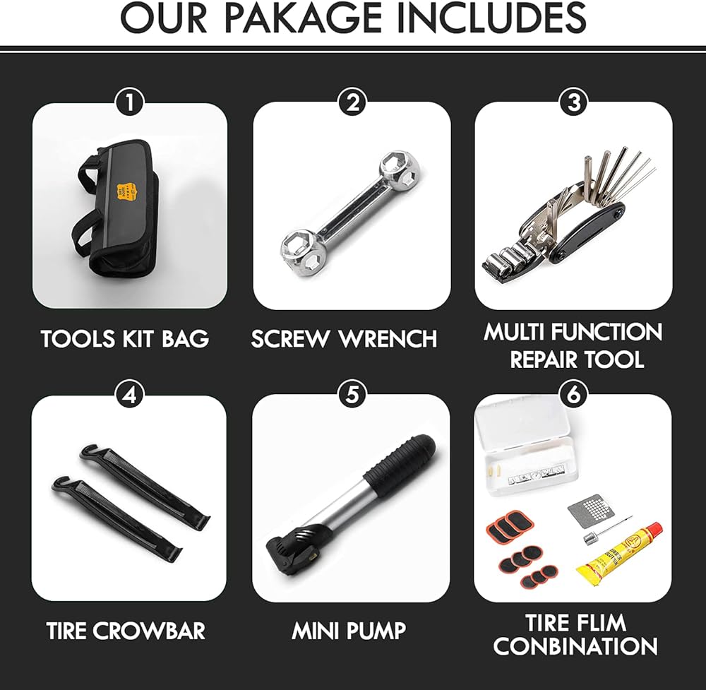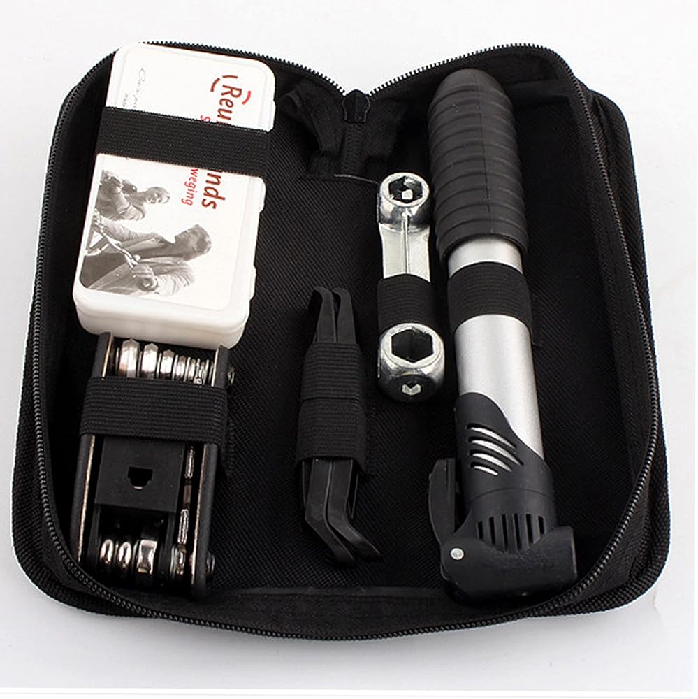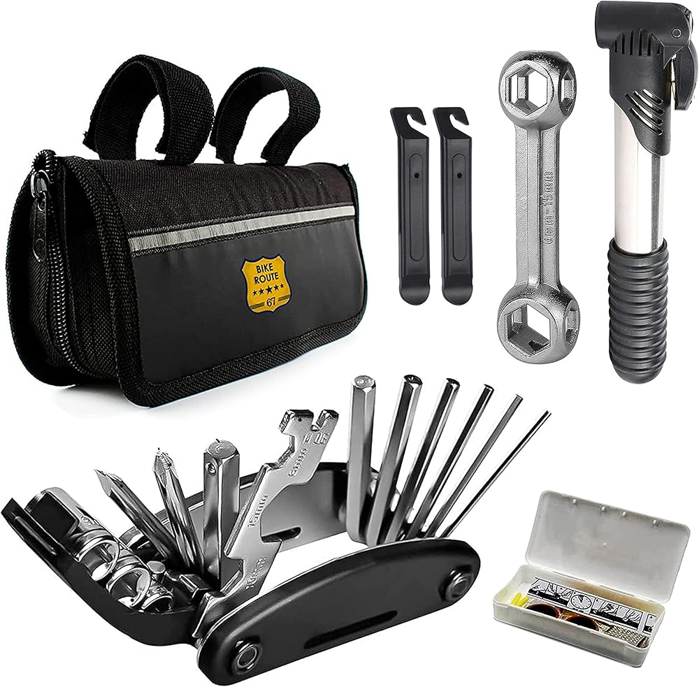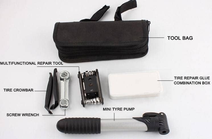 مجموعة أدوات إصلاح الدراجة في حالات الطوارئ الوظيفية: تشتمل مجموعة أدوات الدراجة هذه أثناء الركوب على الطريق على مجموعة أدوات الصيانة الأساسية التي تساعدك في حالات الطوارئ. تأتي مع حقيبة تخزين، والتي يمكن تعليقها بسهولة على دراجتك. ضمان الثقة في الرحلات القصيرة أو الطويلة.