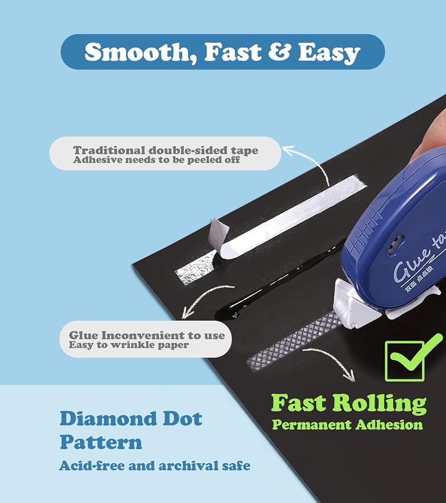 Photo Safe and Strong Adhesion: Our tape features a unique diamond dot pattern and is acid-free, making it safe to use with photos, scrapbooks, paper, cardboard, and other materials. The permanent adhesion ensures that your projects will stay in place safe for decades without ruining.