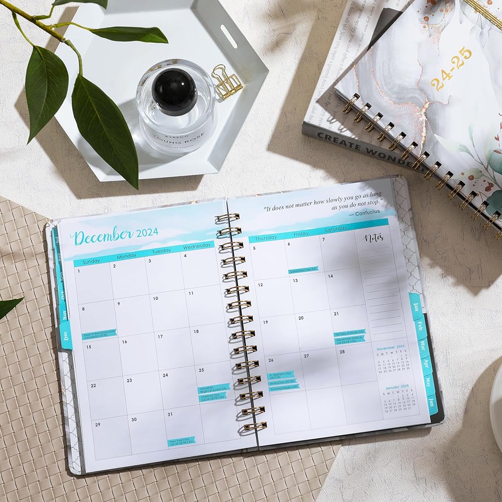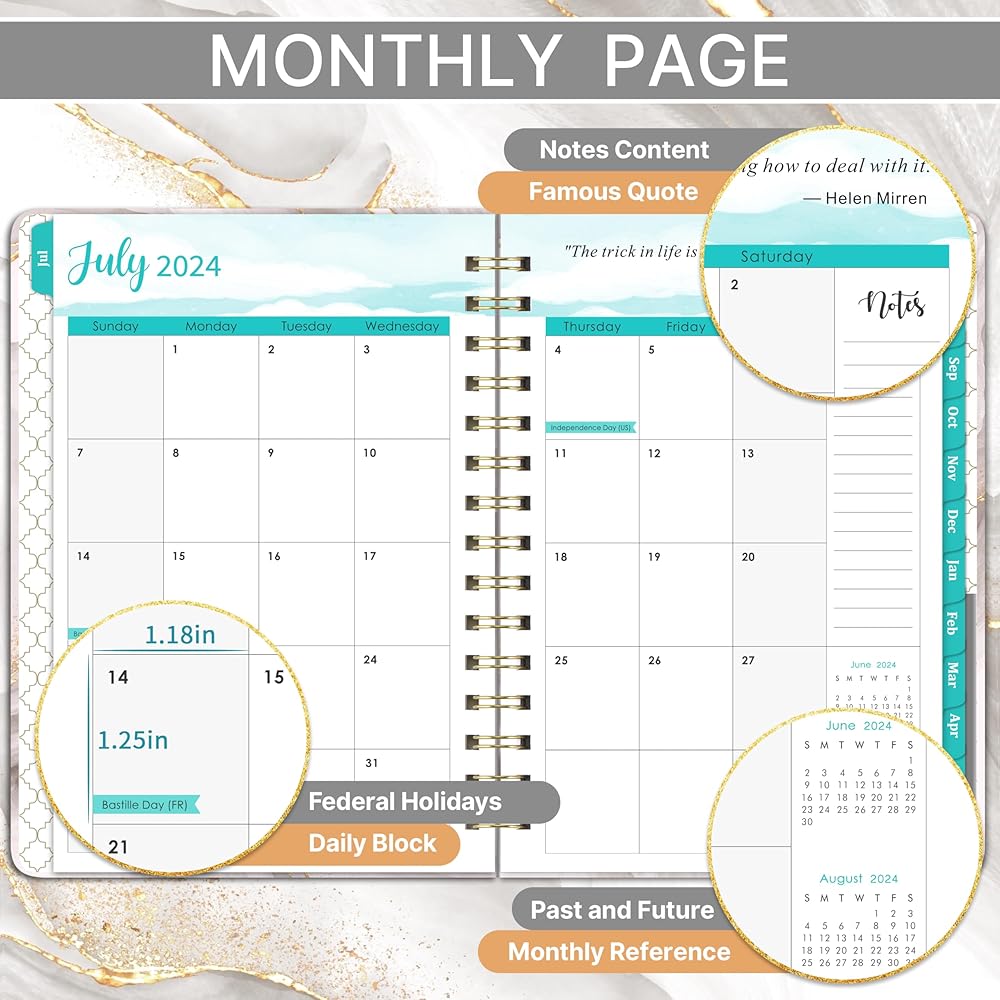 ☕نظرة عامة شهرية - توفر الصفحة الشهرية لمخطط 2024-2025 كتلة فارغة يومية مقاس 1.1*1.18 بوصة، تحتوي على التقويم المرجعي للشهر السابق والشهر التالي. المخطط الذي يحتوي على اقتباسات مشهورة في أعلى يمين الصفحة. يحتوي مخطط 2024-2025 يوميًا وأسبوعيًا وشهريًا على قسم المهام لتتمكن من كتابة الأشياء المهمة.